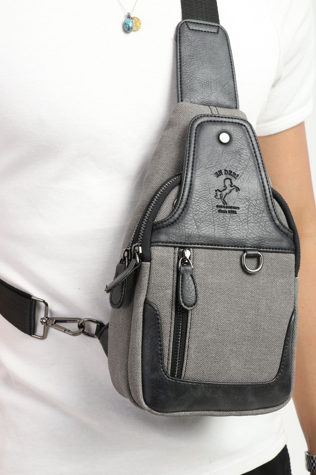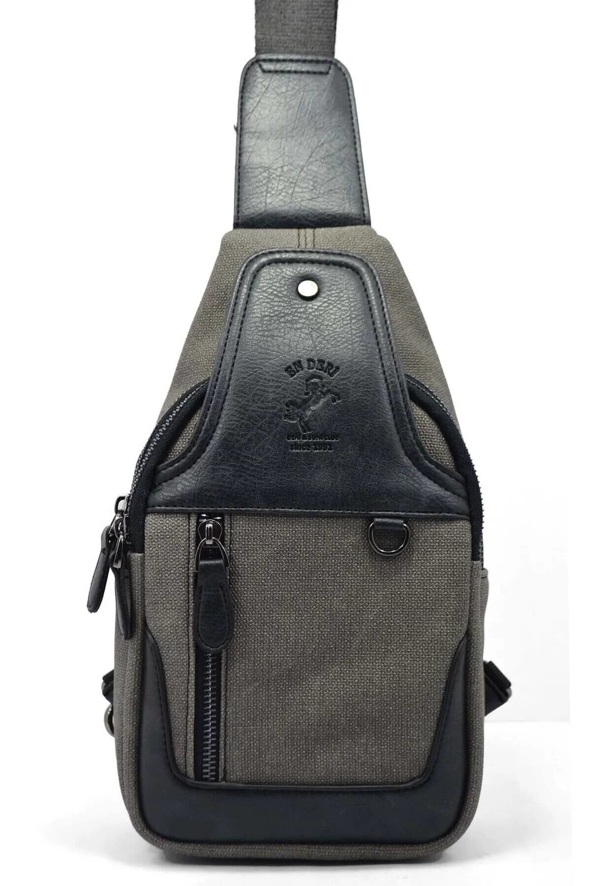 Antrasit Kanvas Omuz Çantası - Mıknatıslı Bölmeli Askılı Çapraz Çanta