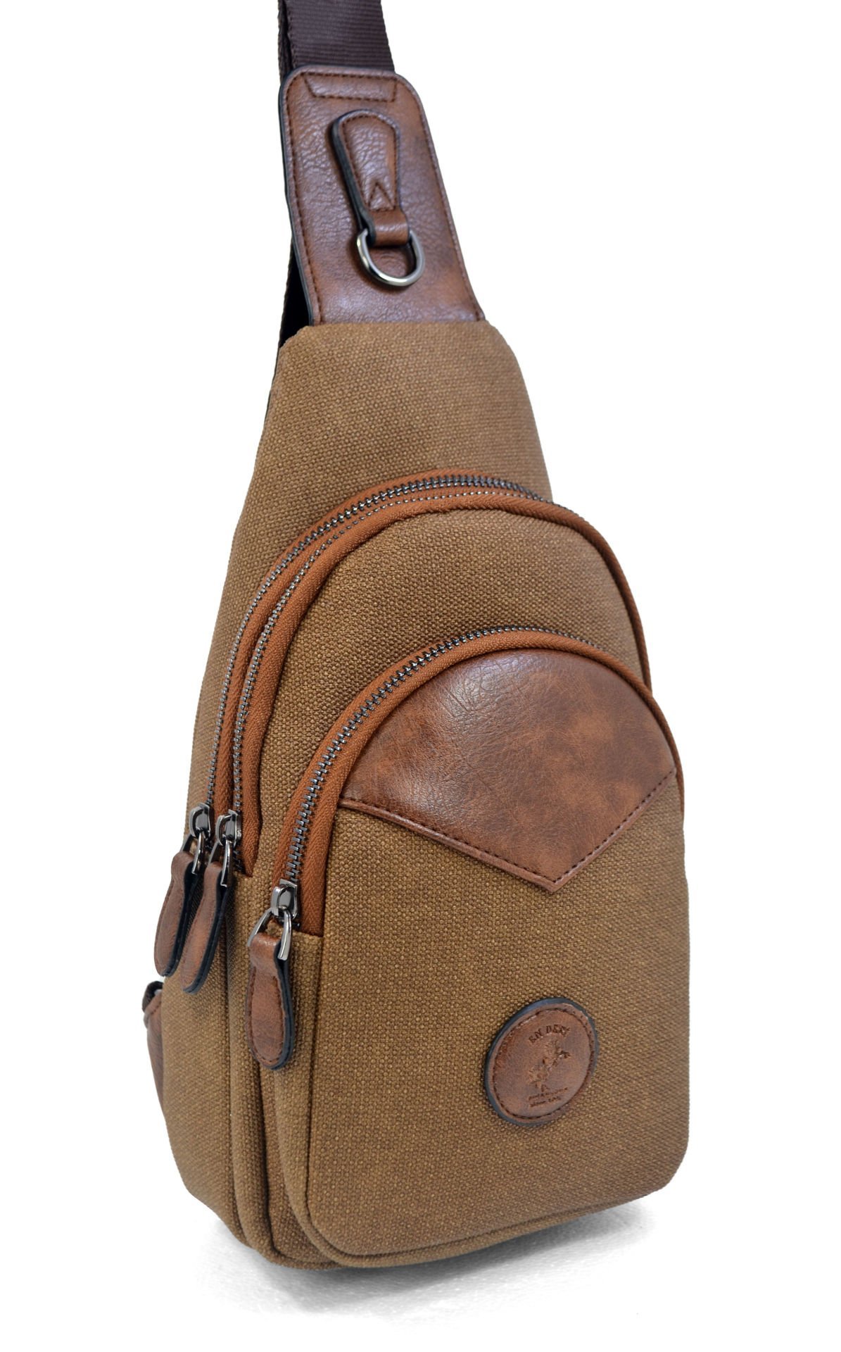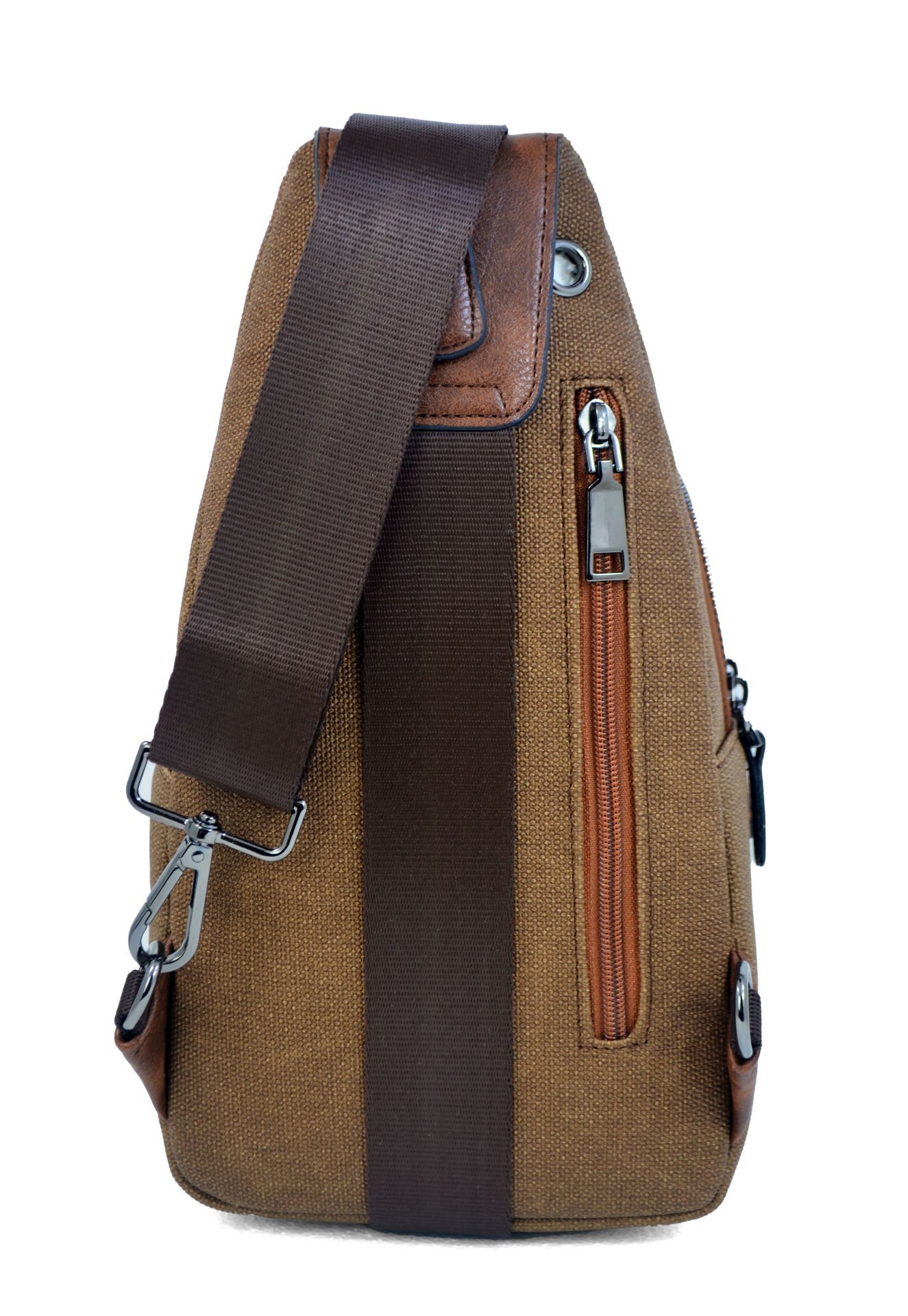 Erkek Çapraz Askılı Kulaklık Çıkışlı Kanvas Göğüs Ve Omuz Çantası 001 taba
