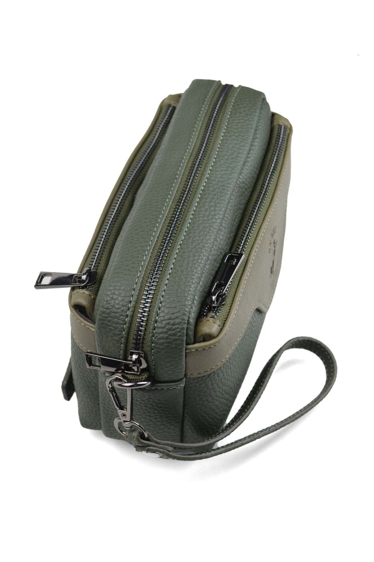 Haki Erkek Çapraz Çanta - Bileklikli El ve Portföy Omuz Çantası