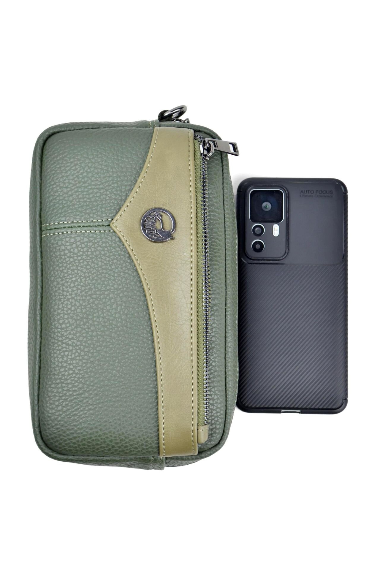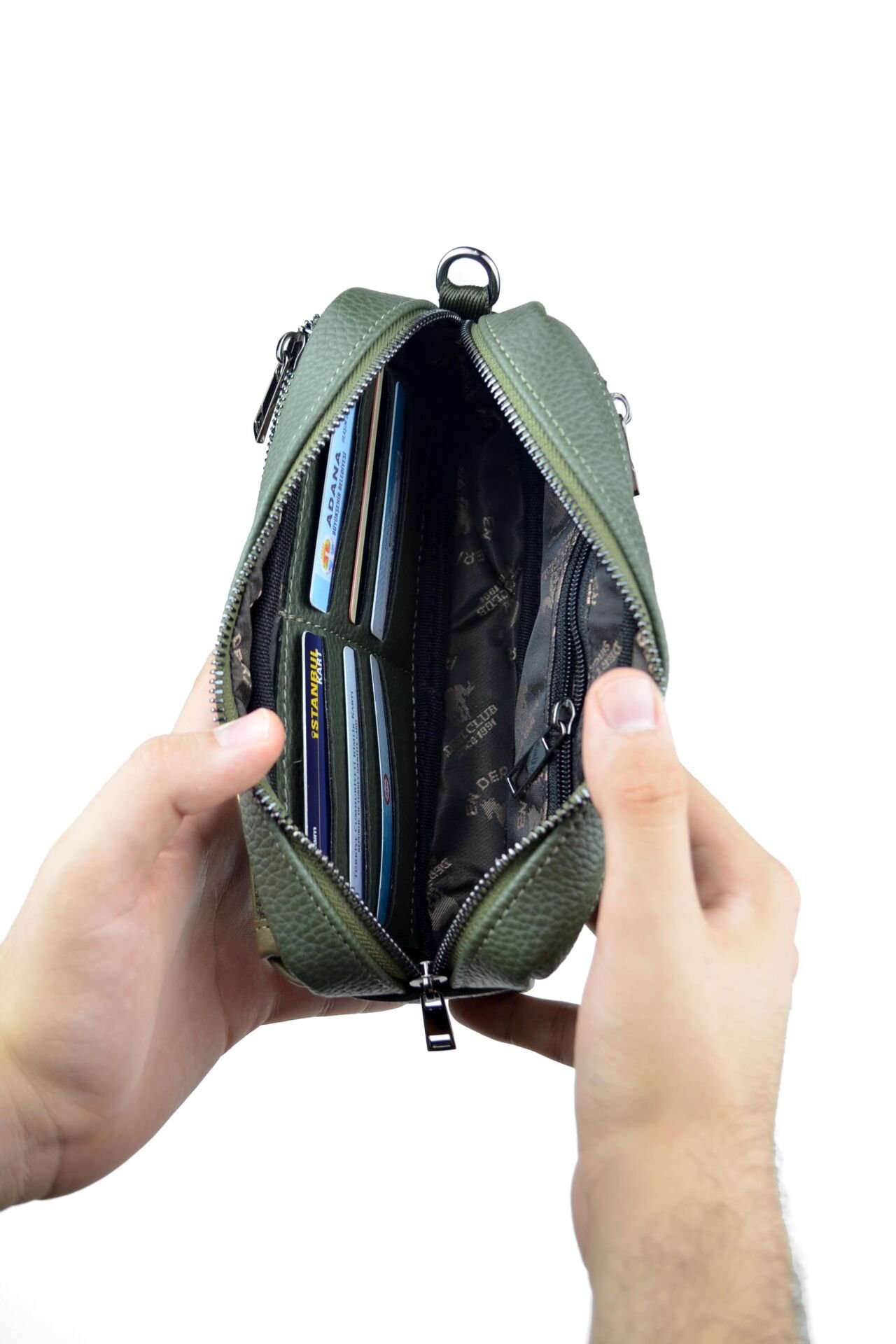Erkek Haki El Çantası - Kartlıklı Bileklikli Clutch Portföy Çanta