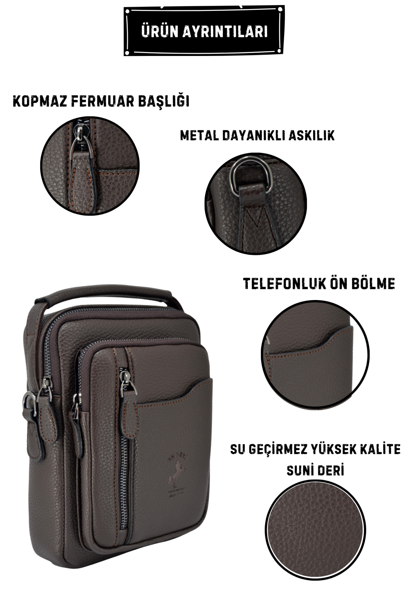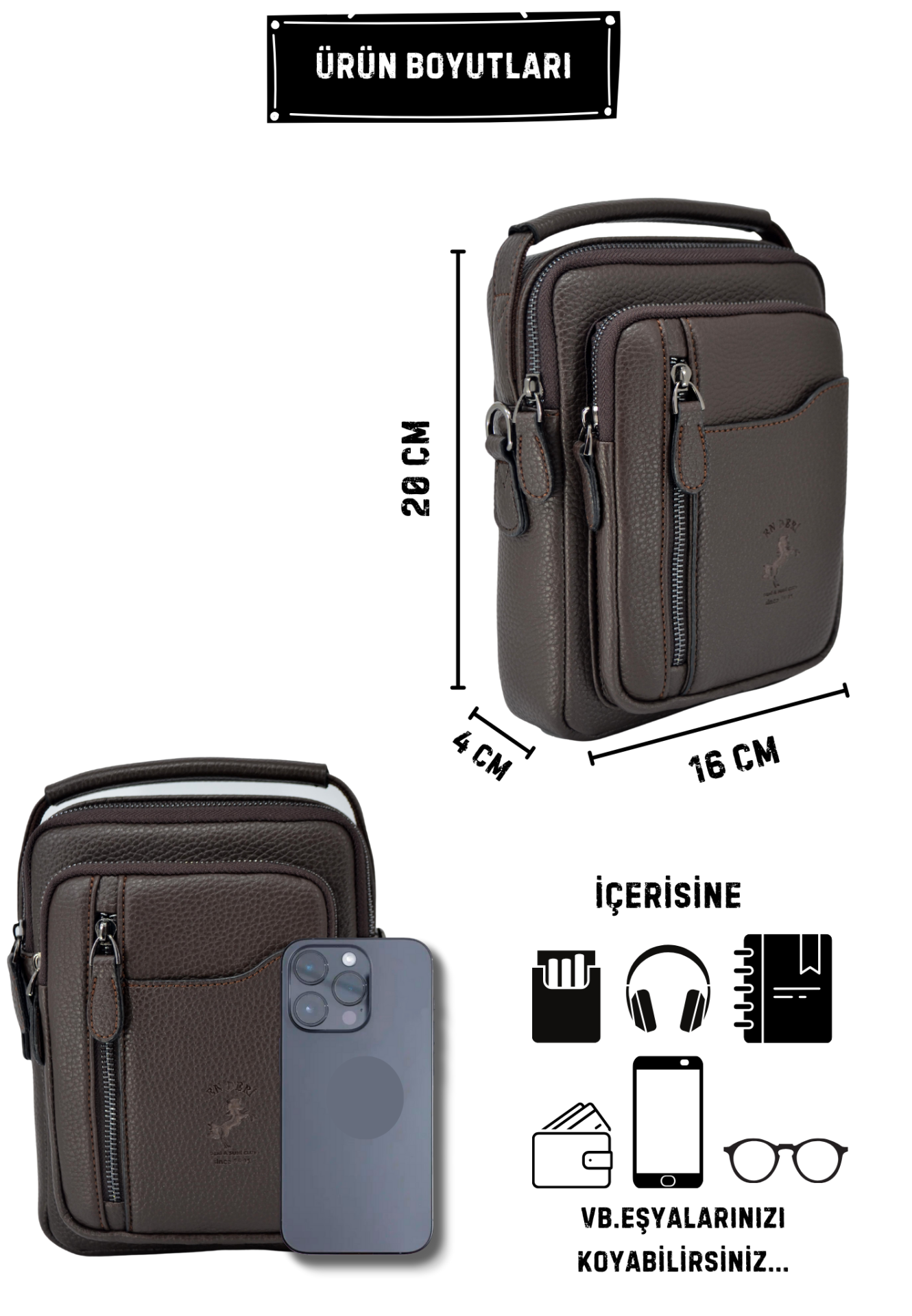 Kahverengi Renk ve Şık Tasarım: Her kombine uyum sağlayan klasik kahverengi rengi ile her ortamda şıklığınızı tamamlar. Hem erkek yan çanta hem de çapraz erkek çantası olarak kullanılabilir.
