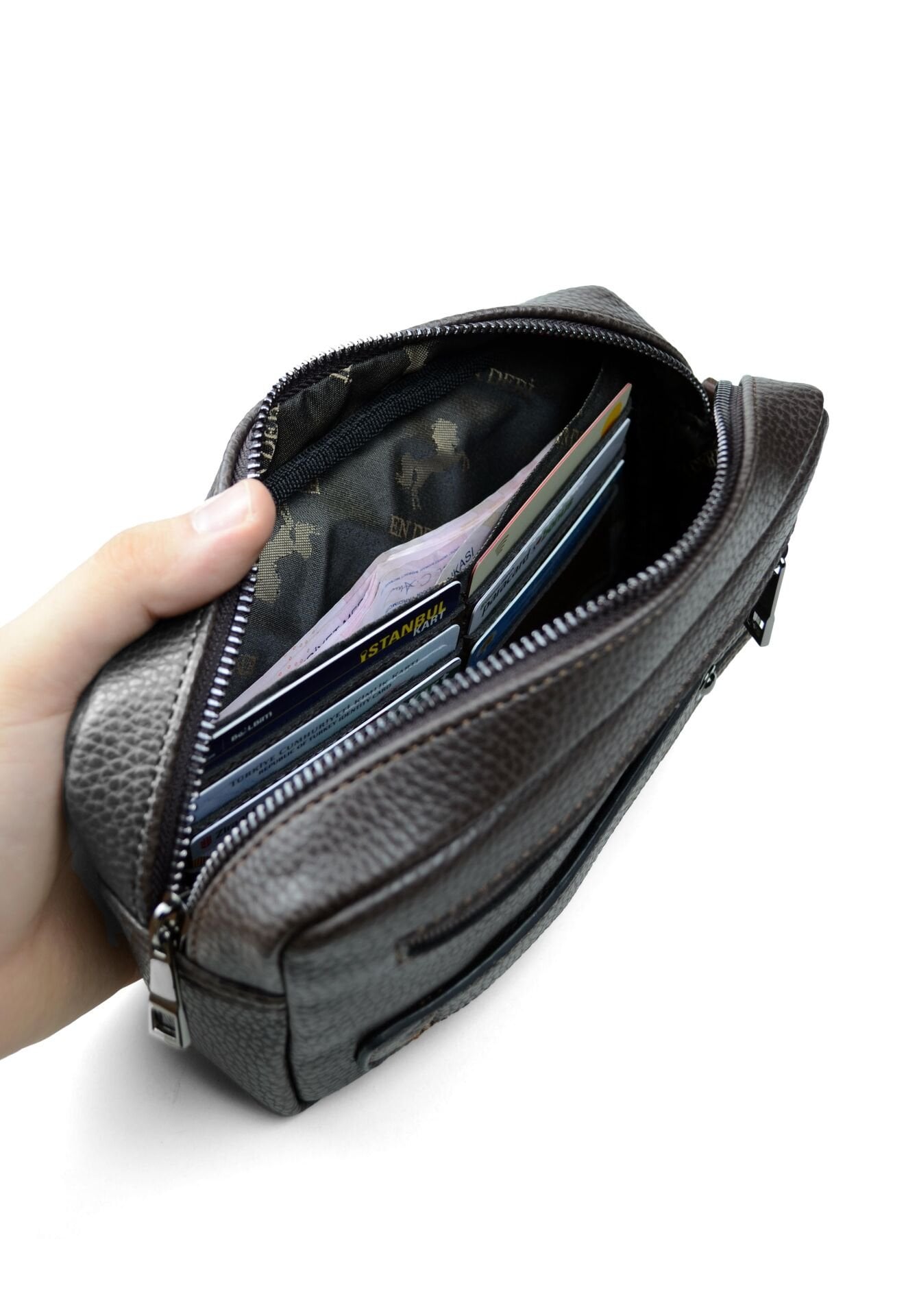 Erkek Kahverengi El Çantası - Kartlıklı Clutch Portföy Çanta