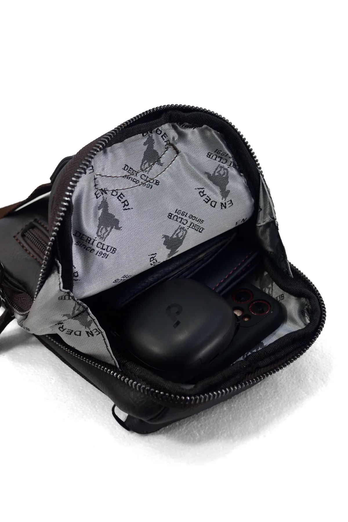 Kompakt fakat çok bölmeli yapısıyla günlük kullanım için ideal bir erkek omuz çantasıdır. Ön kısmında iki ayrı bölme ve iki cüzdanlık bulunur. Arka taraftaki fermuarlı cep, değerli eşyalar için güvenli alan sağlar. İçteki telefon bölmesi sayesinde telefon, powerbank ve kulaklık gibi eşyalar düzenli şekilde taşınır. Ayarlanabilir askısı hem sağ hem sol omuz kullanımına uygundur. A kalite suni deri ve sağlam fermuar yapısı uzun ömürlü kullanım sunar.