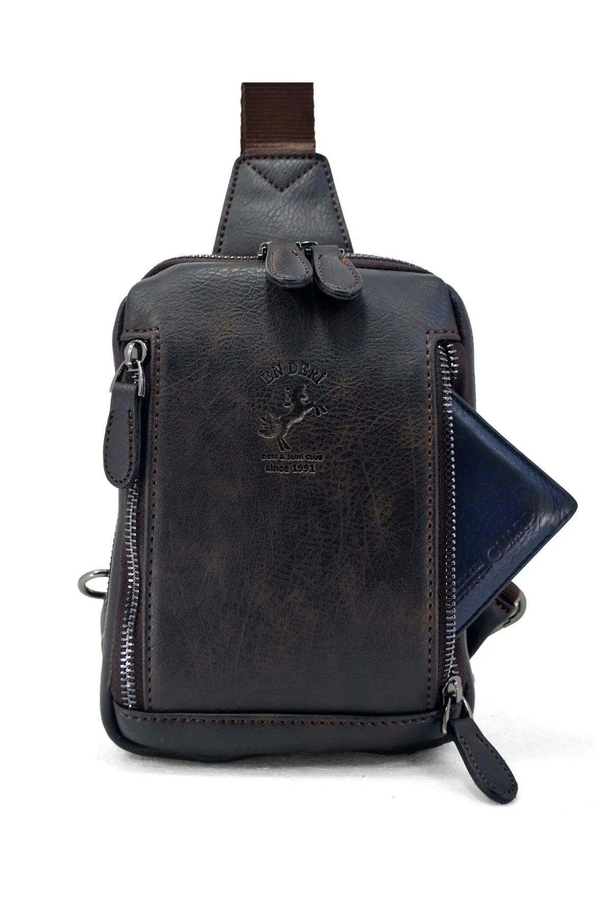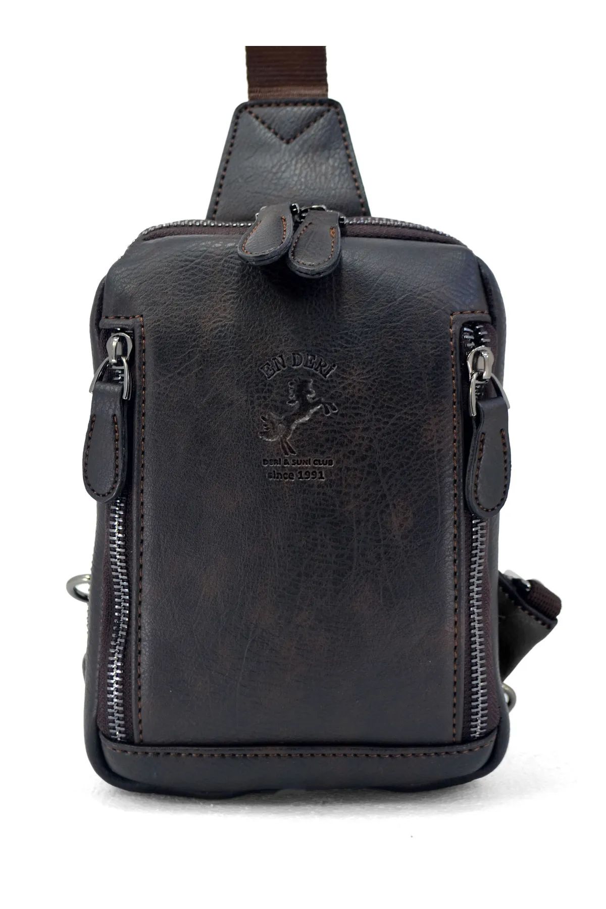 En Deri tarafından üretilen bu kompakt erkek çapraz askılı omuz çantası, günlük kullanımda pratiklik ve şıklığı bir arada sunan modern bir modeldir. A kalite suni deri yapısı, çoklu bölmeleri ve ergonomik tasarımıyla günlük şehir yaşamı ve seyahatler için ideal bir seçimdir.
