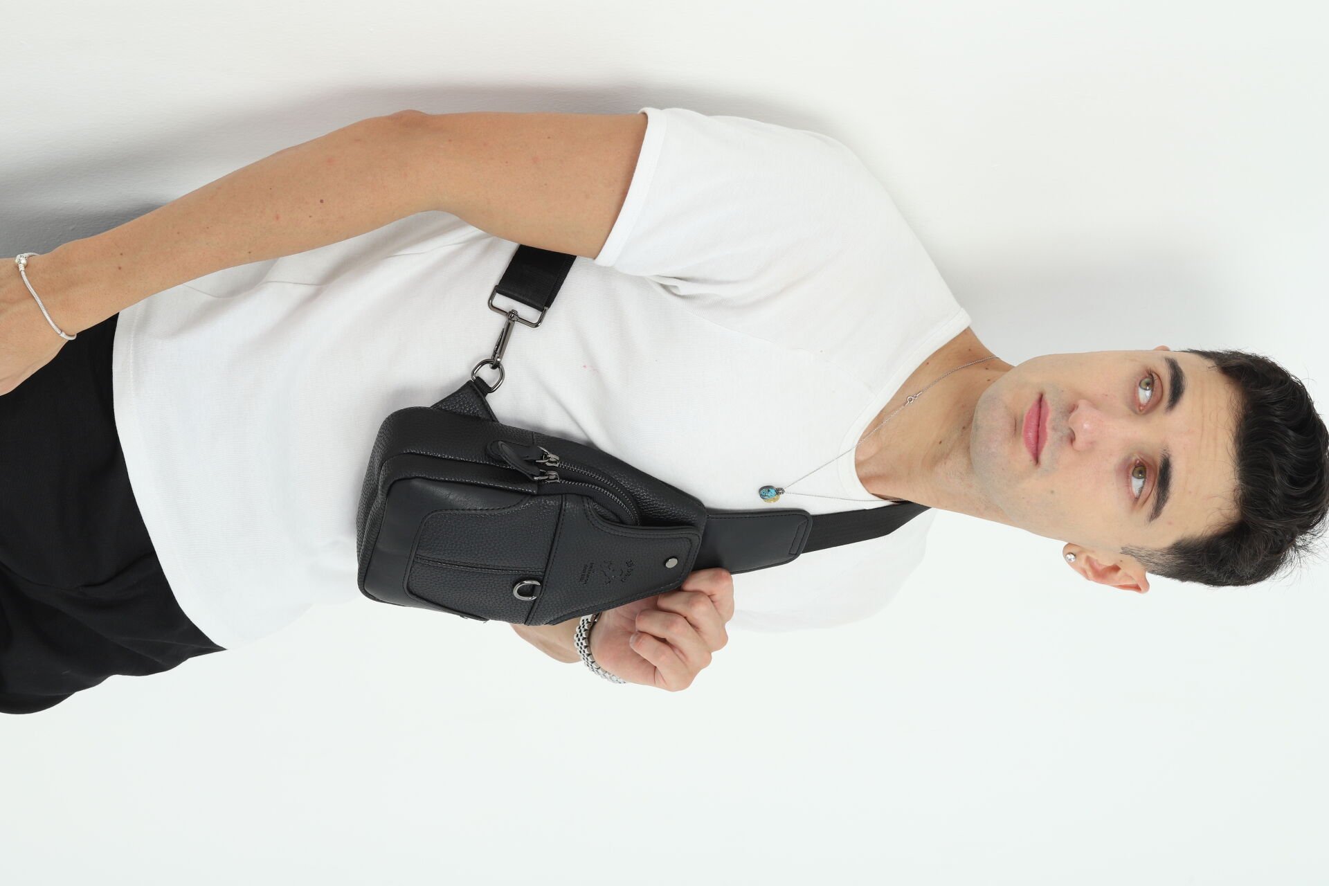 Erkek Siyah Çok Bölmeli Günlük Çapraz Askılı Omuz Çantası