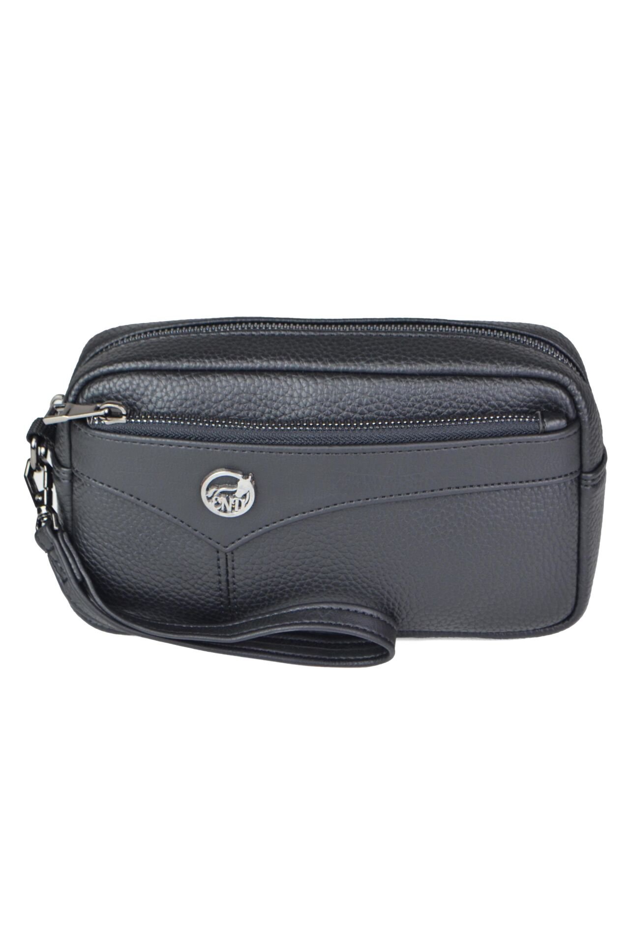 Erkek Siyah El Çantası - Kartlıklı Bileklikli Clutch Portföy Çanta