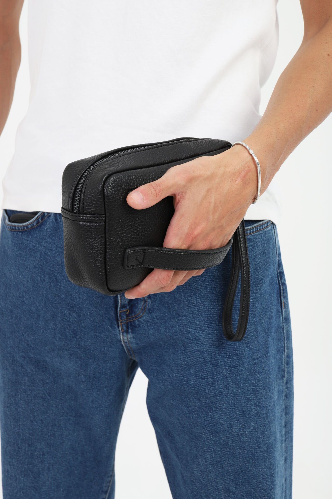 Günlük stilinizi tamamlayacak zarif bir dokunuş arıyorsanız, bu siyah erkek el çantası tam size göre. Siyah renkli suni deri yüzeyi ve bileklik kemerli ergonomik tasarımı ile öne çıkan bu model, işlevselliği ve modern görünümü bir arada sunar. EN DERİ kalitesiyle %100 yerli üretim olarak hazırlanan bu çanta, şehir hayatının temposuna ayak uydurmanız için ideal bir yardımcıdır.