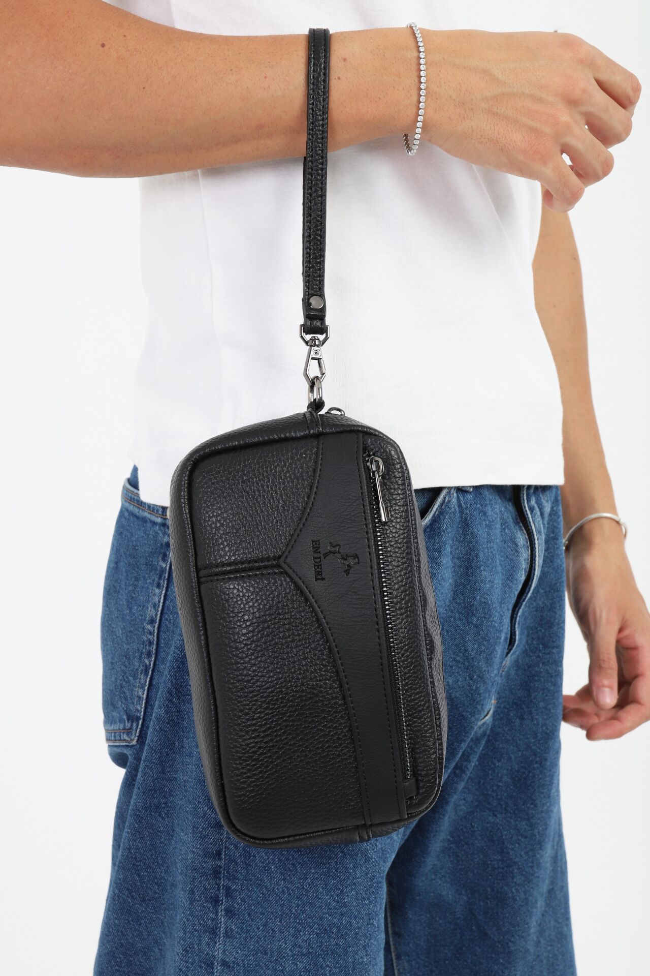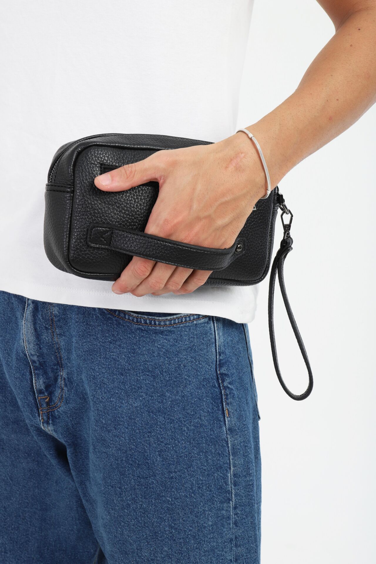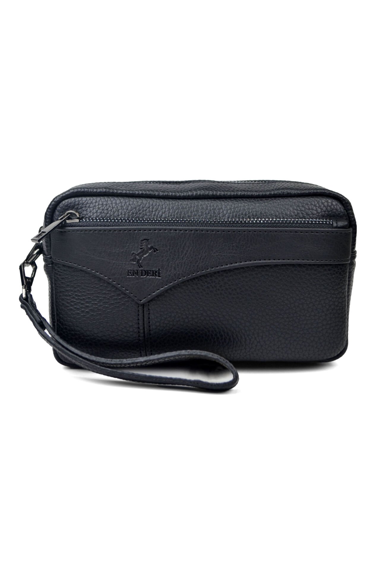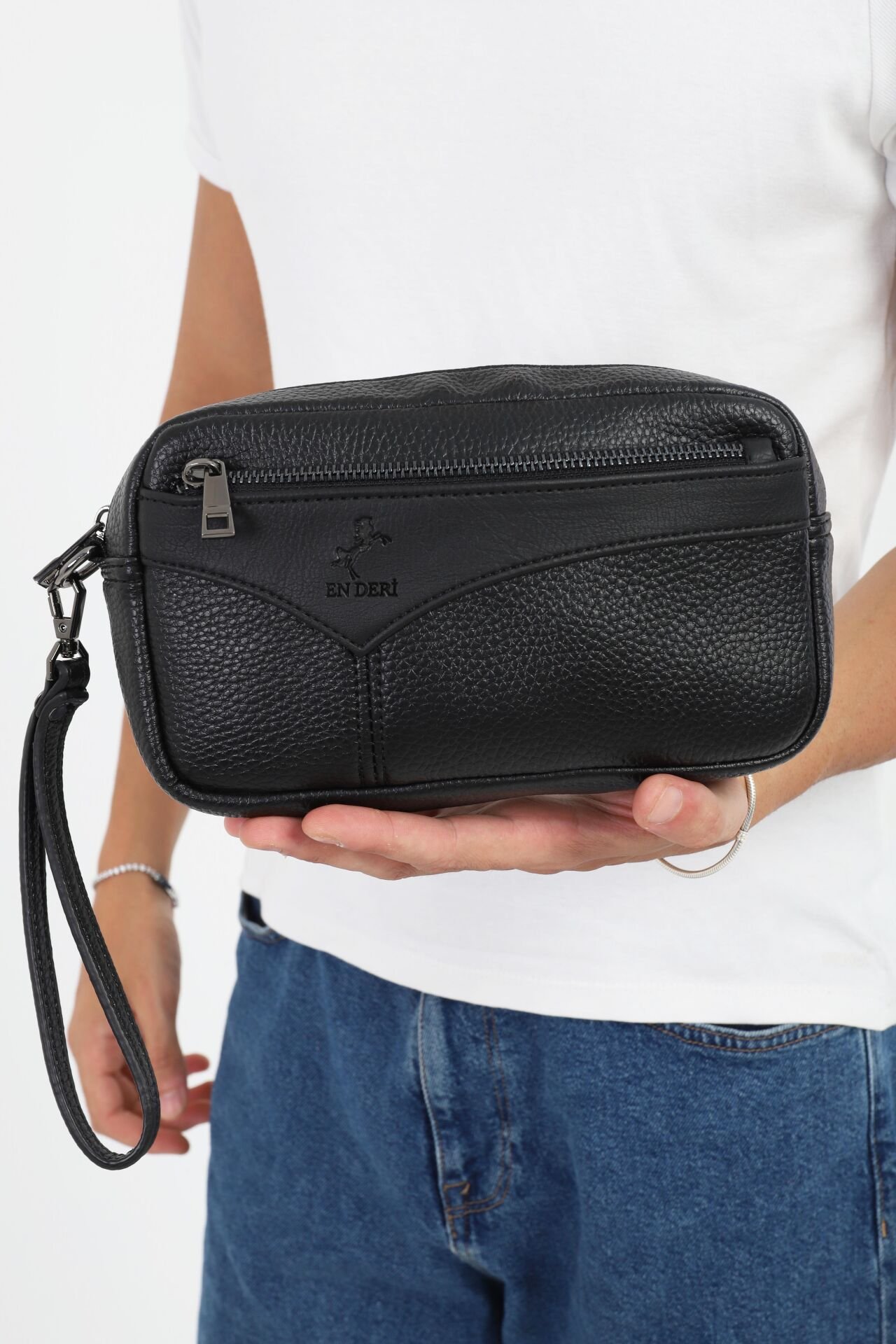 Günlük stilinizi tamamlayacak zarif bir dokunuş arıyorsanız, bu siyah erkek el çantası tam size göre. Siyah renkli suni deri yüzeyi ve bileklik kemerli ergonomik tasarımı ile öne çıkan bu model,işlevselliği ve modern görünümü bir arada sunar. EN DERİ kalitesiyle %100 yerli üretim olarak hazırlanan bu çanta, şehir hayatının temposuna ayak uydurmanız için ideal bir yardımcıdır.