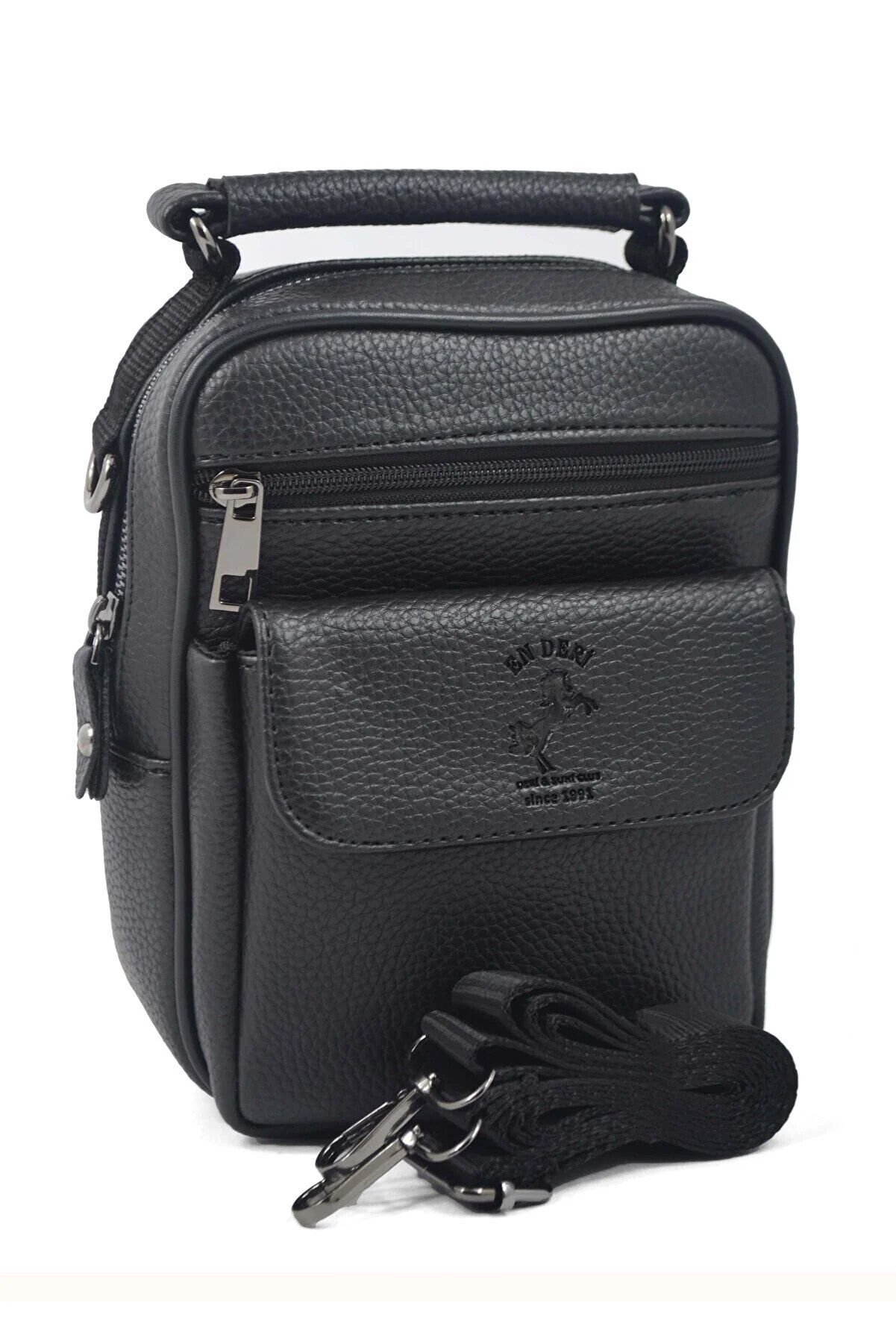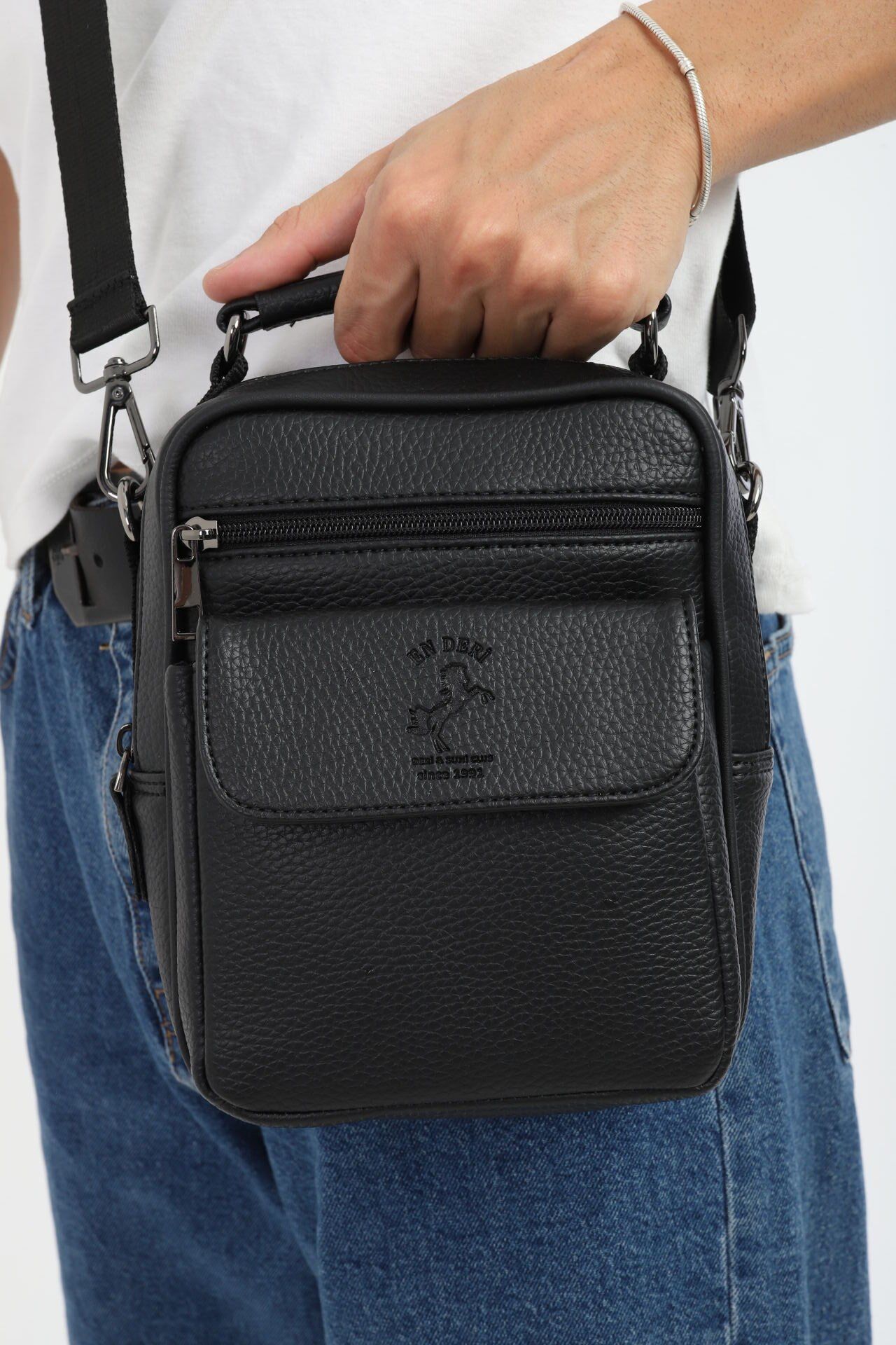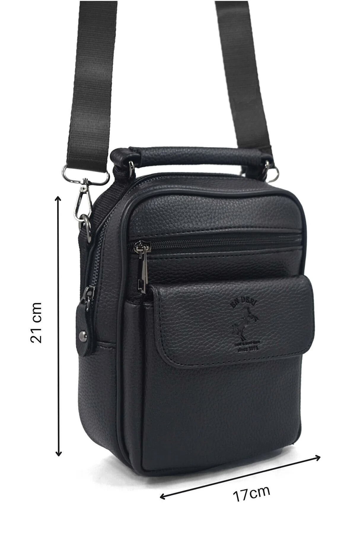 En Deri tarafından üretilen bu siyah erkek el ve omuz çantası, modern şehir yaşamının ihtiyaçlarına göre tasarlanmış şık ve fonksiyonel bir modeldir. Suni deri yapısı, ayarlanabilir askısı ve çok bölmeli düzeni sayesinde hem erkek omuz çantası hem de erkek çapraz çanta olarak kullanılabilir. Erkek postacı çanta formuyla da günlük kullanımda büyük pratiklik sağlar.