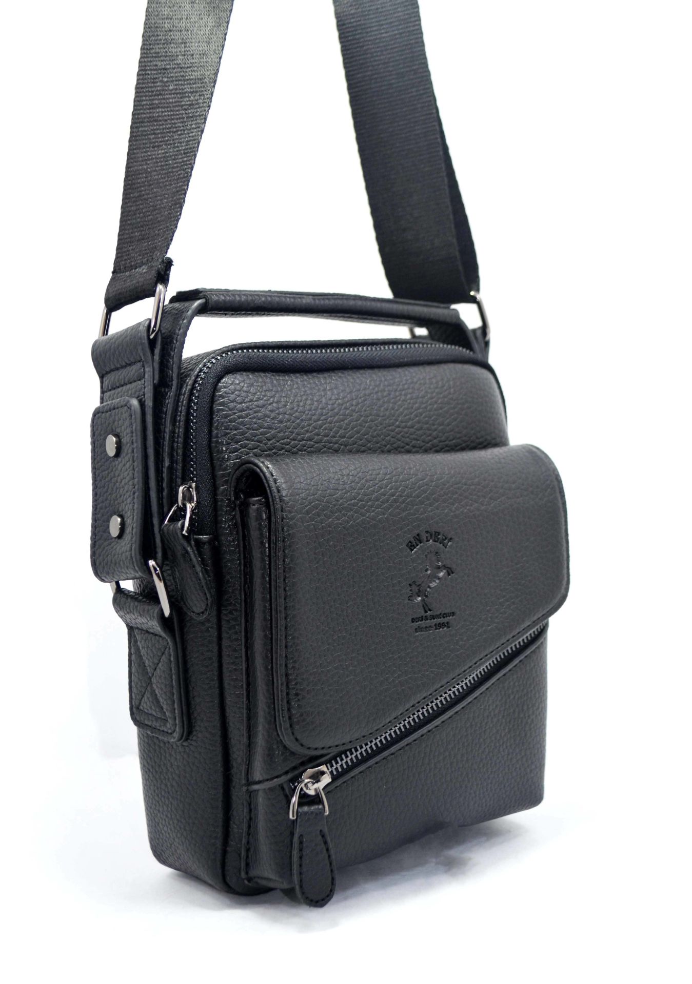 Siyah Çok Bölmeli Omuz Çantası - Erkek Ayarlanabilir Askılı Çapraz Çanta
