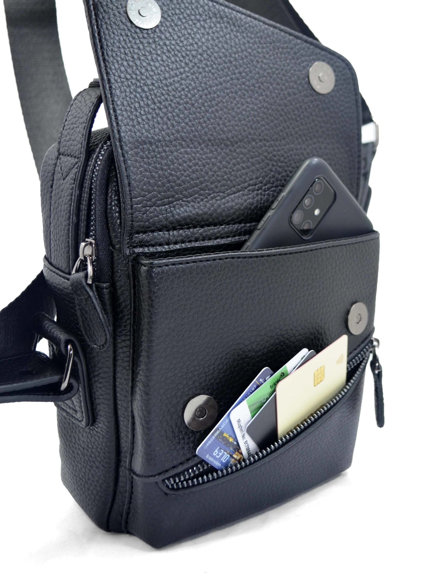 Fonksiyonel Düzen ve Kompakt Tasarım: Siyah Telefon Kartlıklı Erkek Omuz Çantası