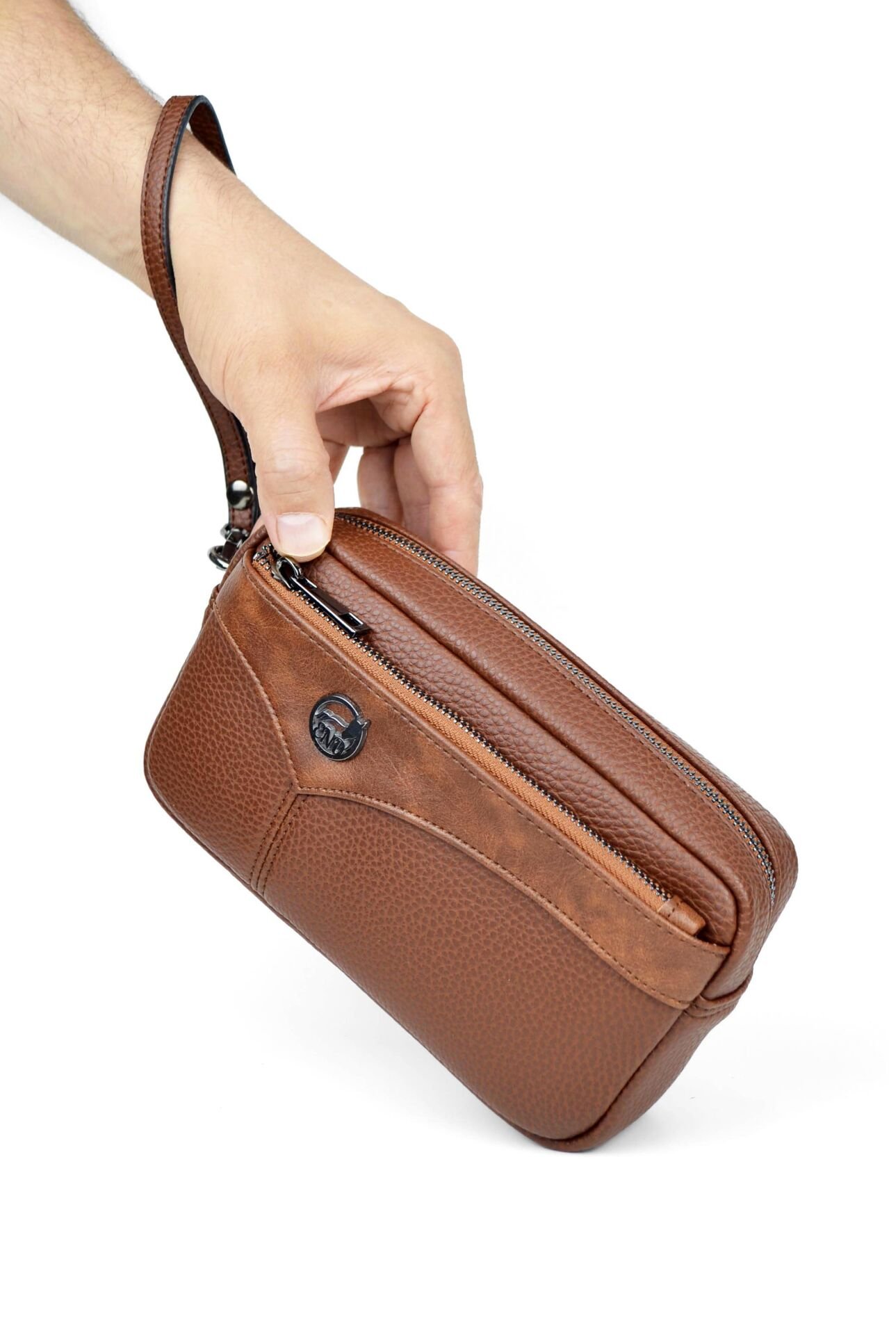 Erkek Taba El Çantası - Kartlıklı Bileklikli Clutch Portföy Çanta