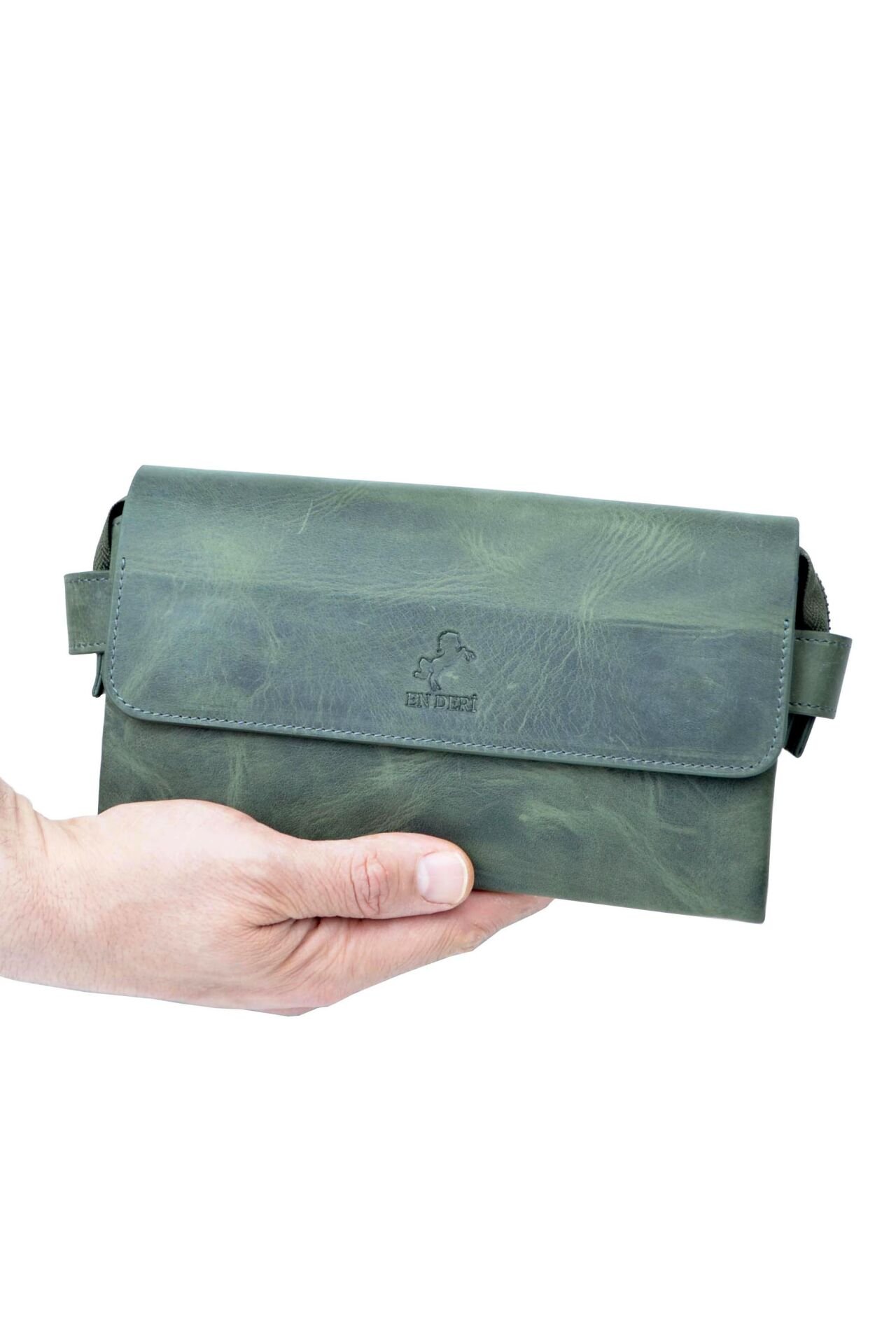 Hakiki Deri Bileklik Kemerli Çok Bölmeli El Çantası Portföy Çanta
