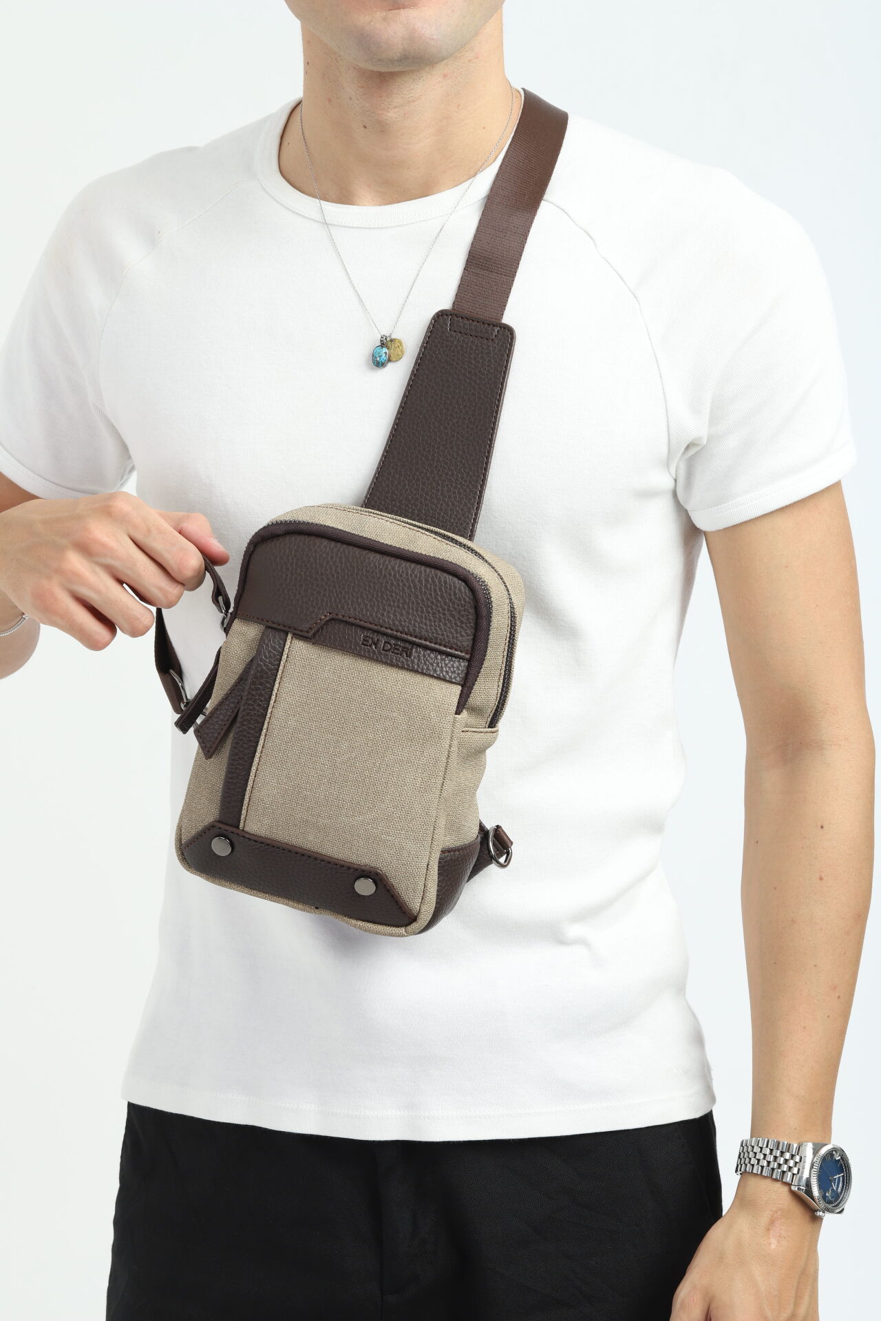 EN DERİ uzmanlığıyla hazırlanan bu kanvas çanta, modern tasarımı ve %100 doğal dokusuyla günlük yaşamda şıklığı ve işlevselliği bir araya getiriyor. Popüler kanvas çanta modelleri arasında öne çıkan bu tasarım, hem postacı çantası formunda hem de çapraz çanta rahatlığında kullanılabilir. Şehir hayatının temposuna estetik ve doğal bir çözüm sunar.