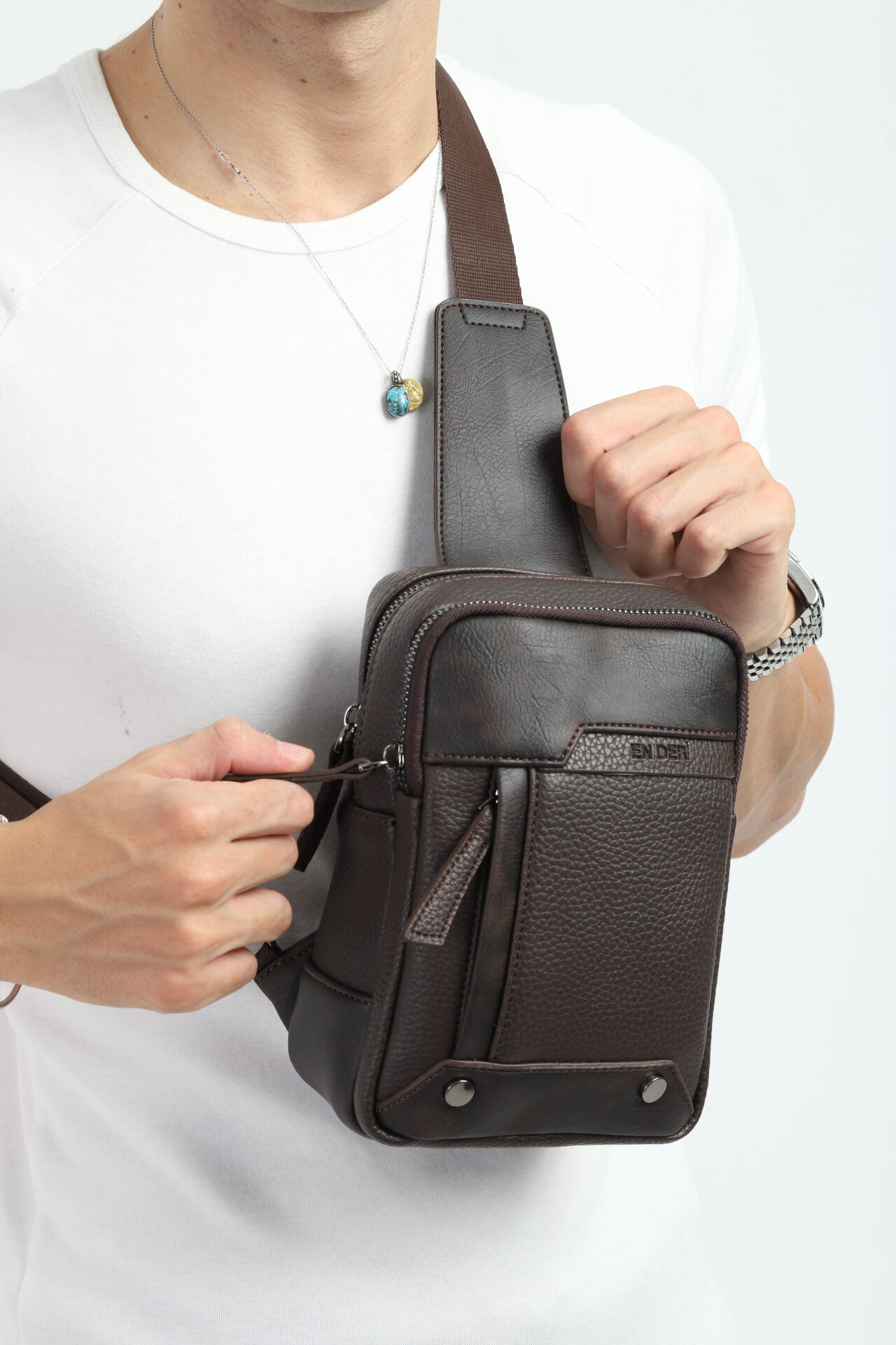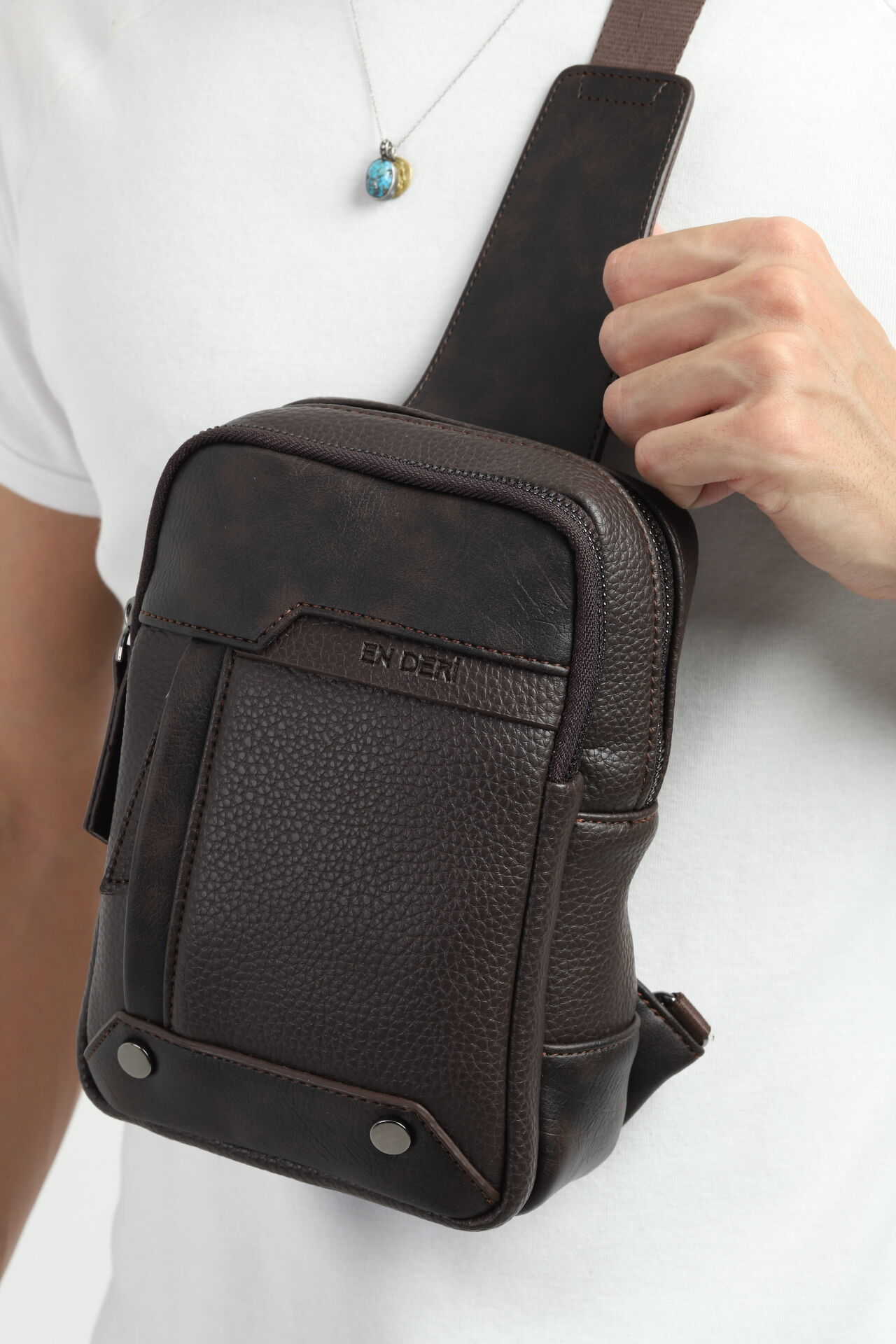 İşlevsellik ve estetiği buluşturan bu omuz çantası, modern hayatın temposuna ayak uydurmak isteyenler için EN DERİ tarafından tasarlandı. Her çanta, üretim sürecine bağlı olarak kendine özgü bir dokuya sahiptir.