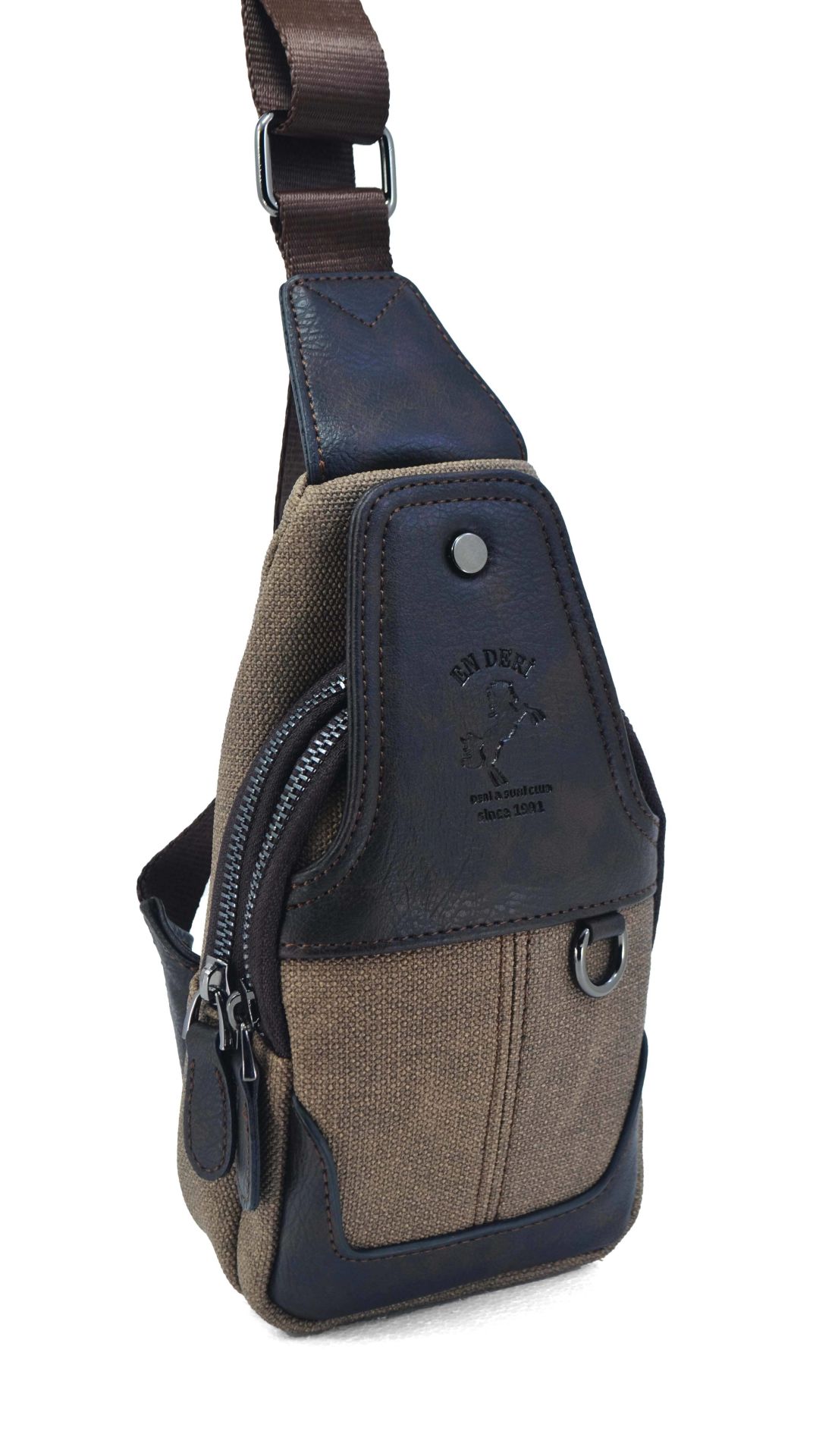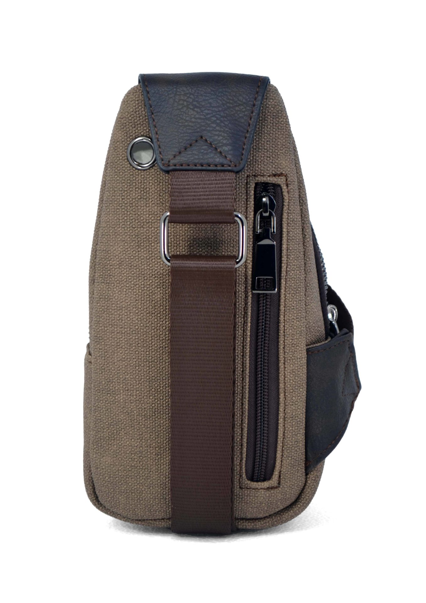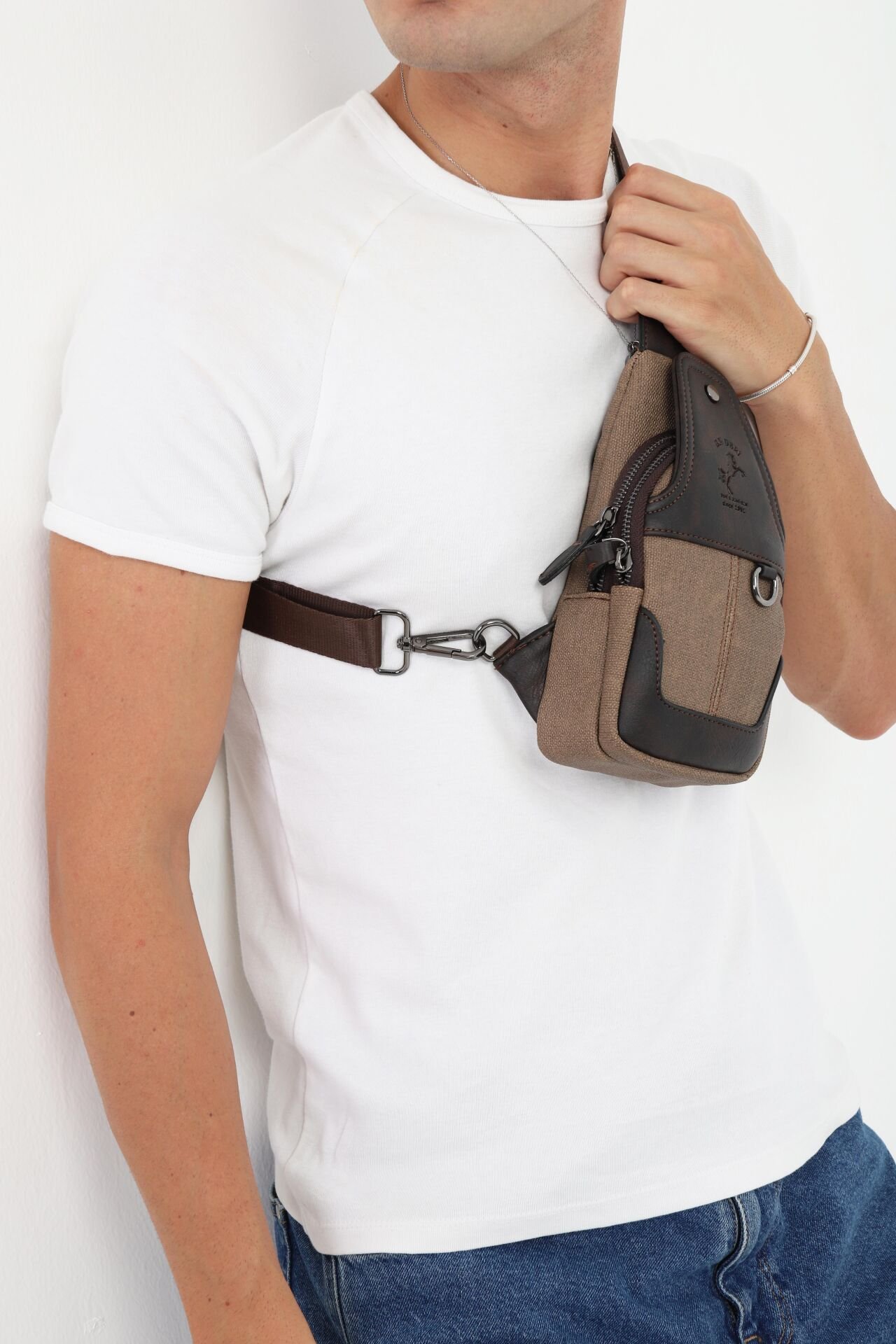 Kahverengi Kanvas Omuz Çantası - Mıknatıslı Bölmeli Küçük Askılı Çapraz Çanta