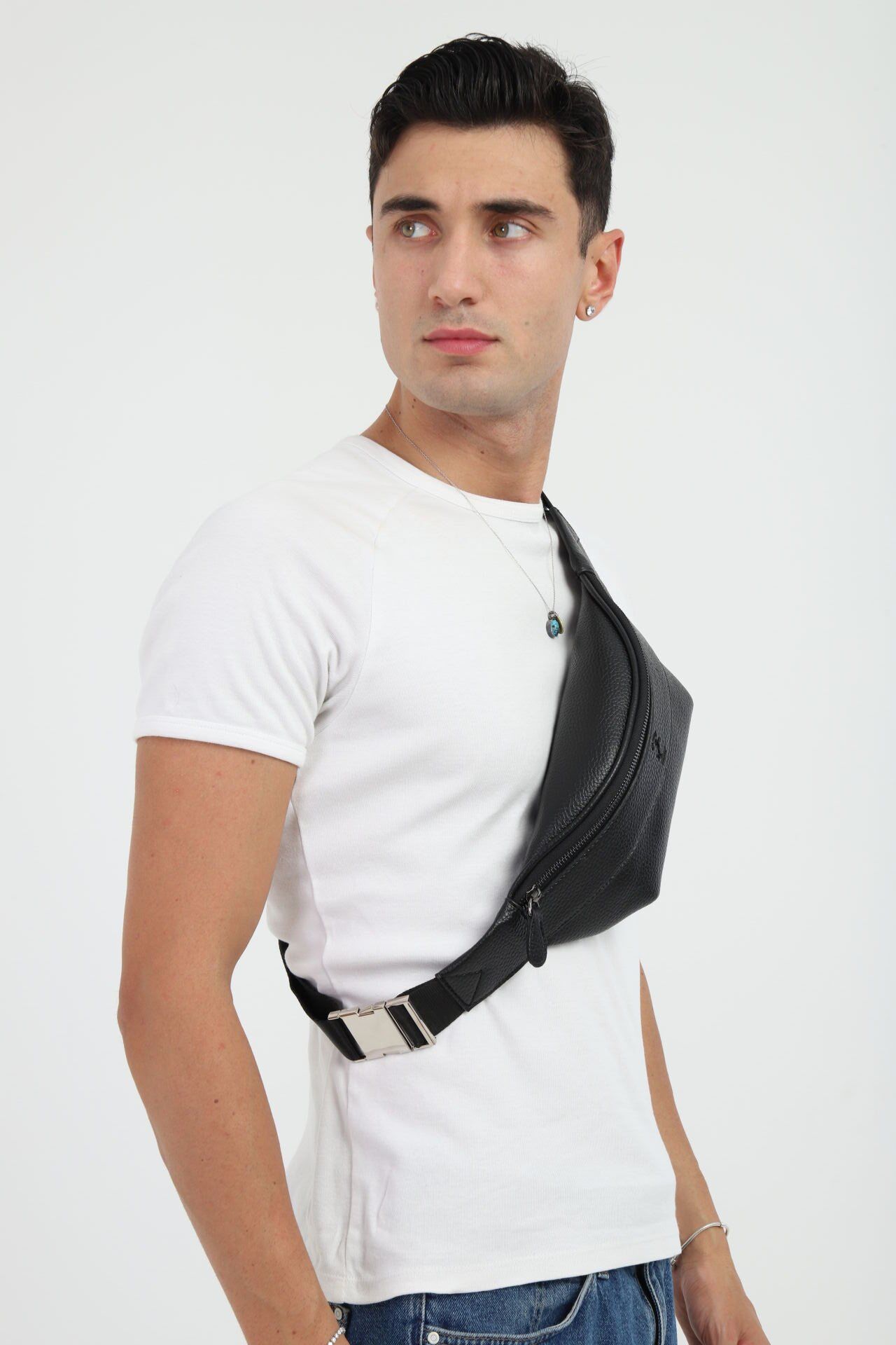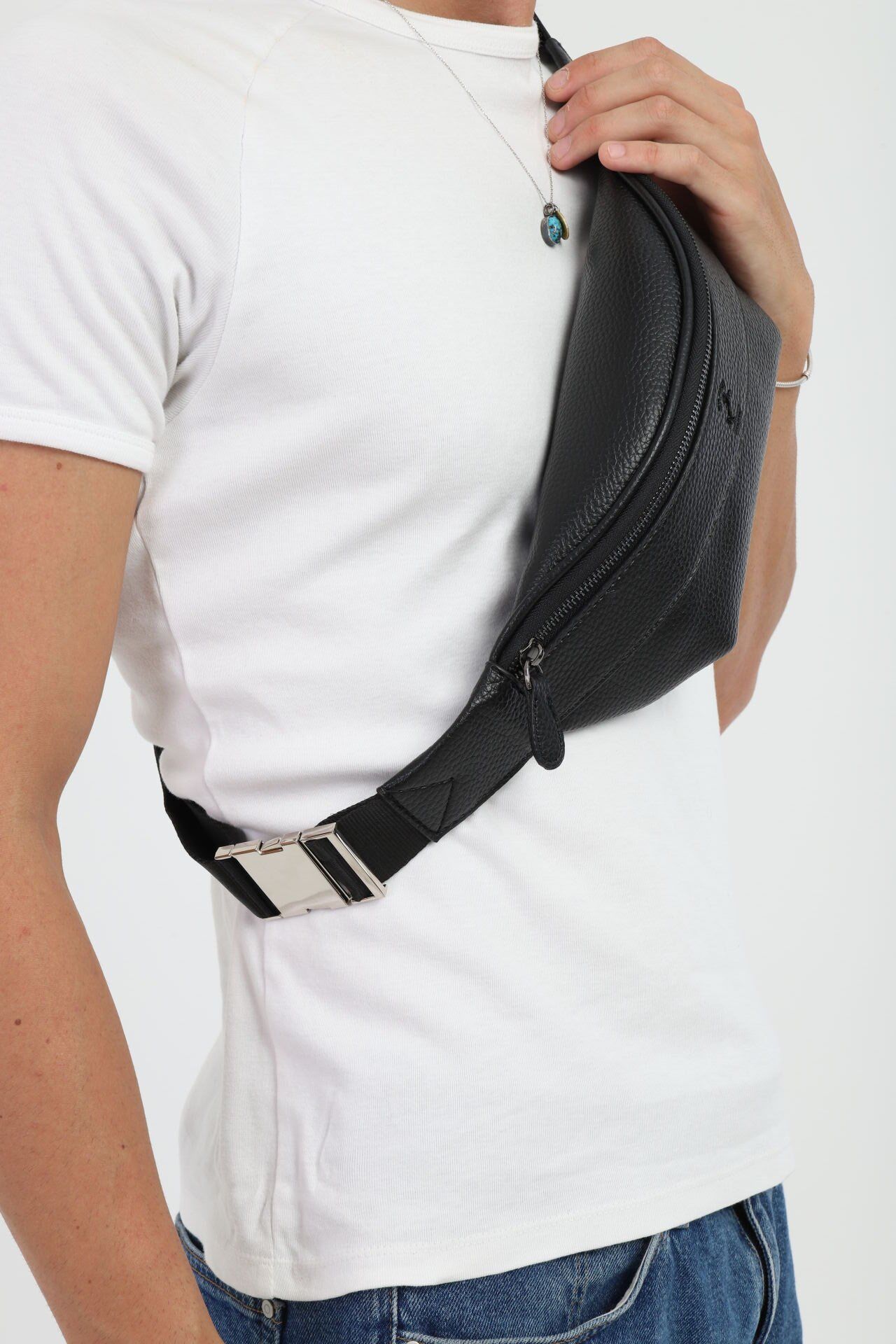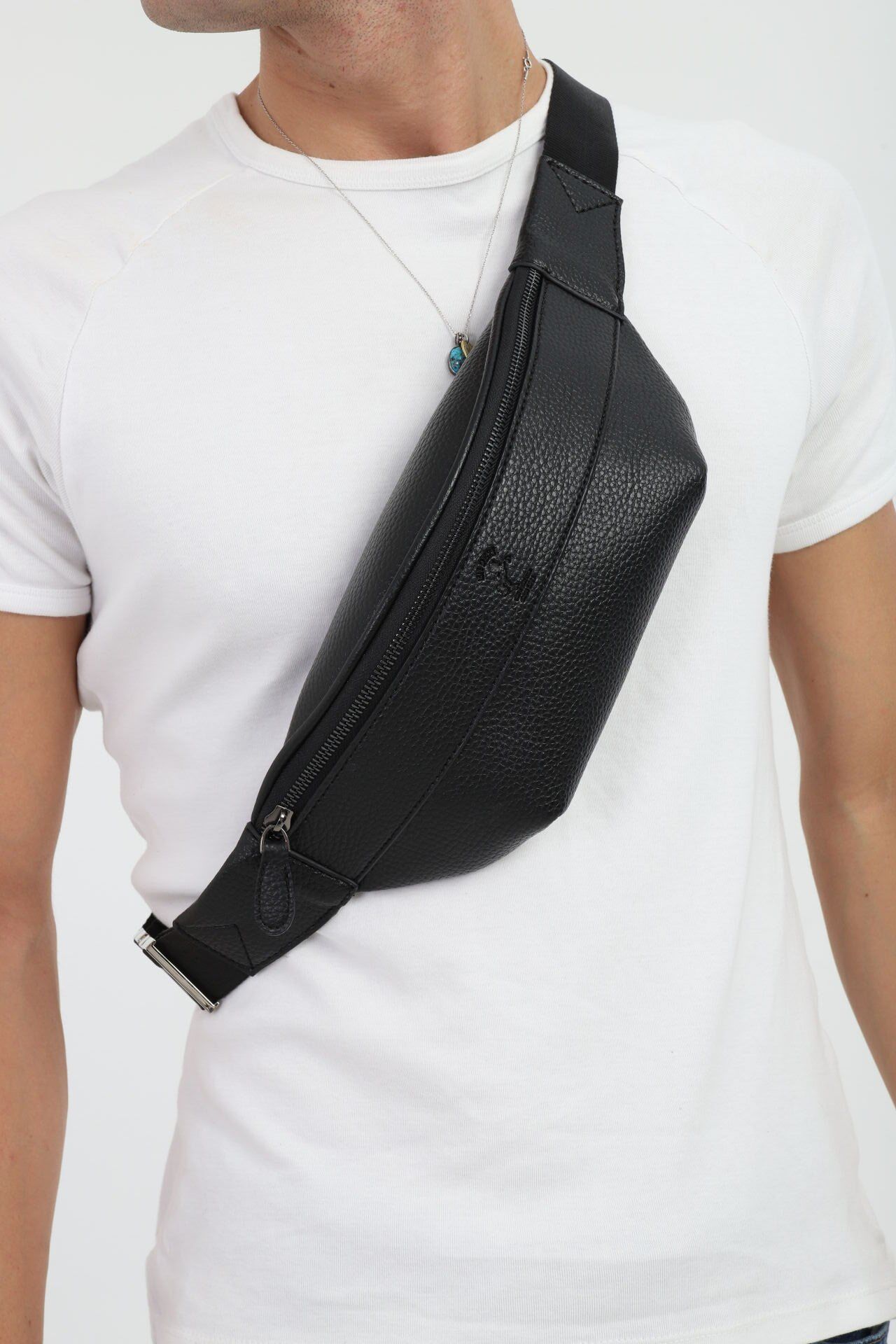 Siyah Çok Fonksiyonlu Omuz Çantası - Günlük Erkek Çapraz ve Bel Çantası