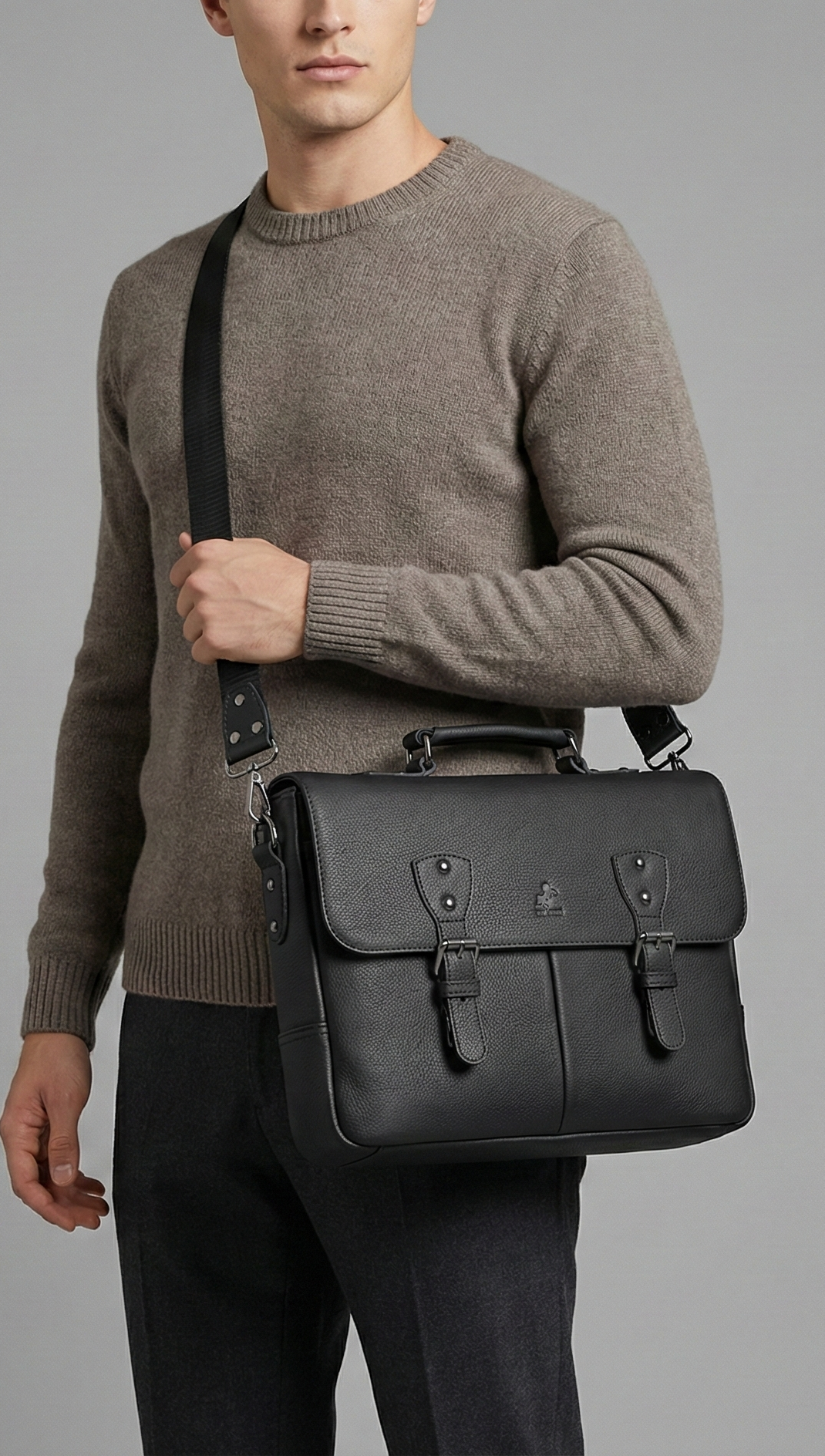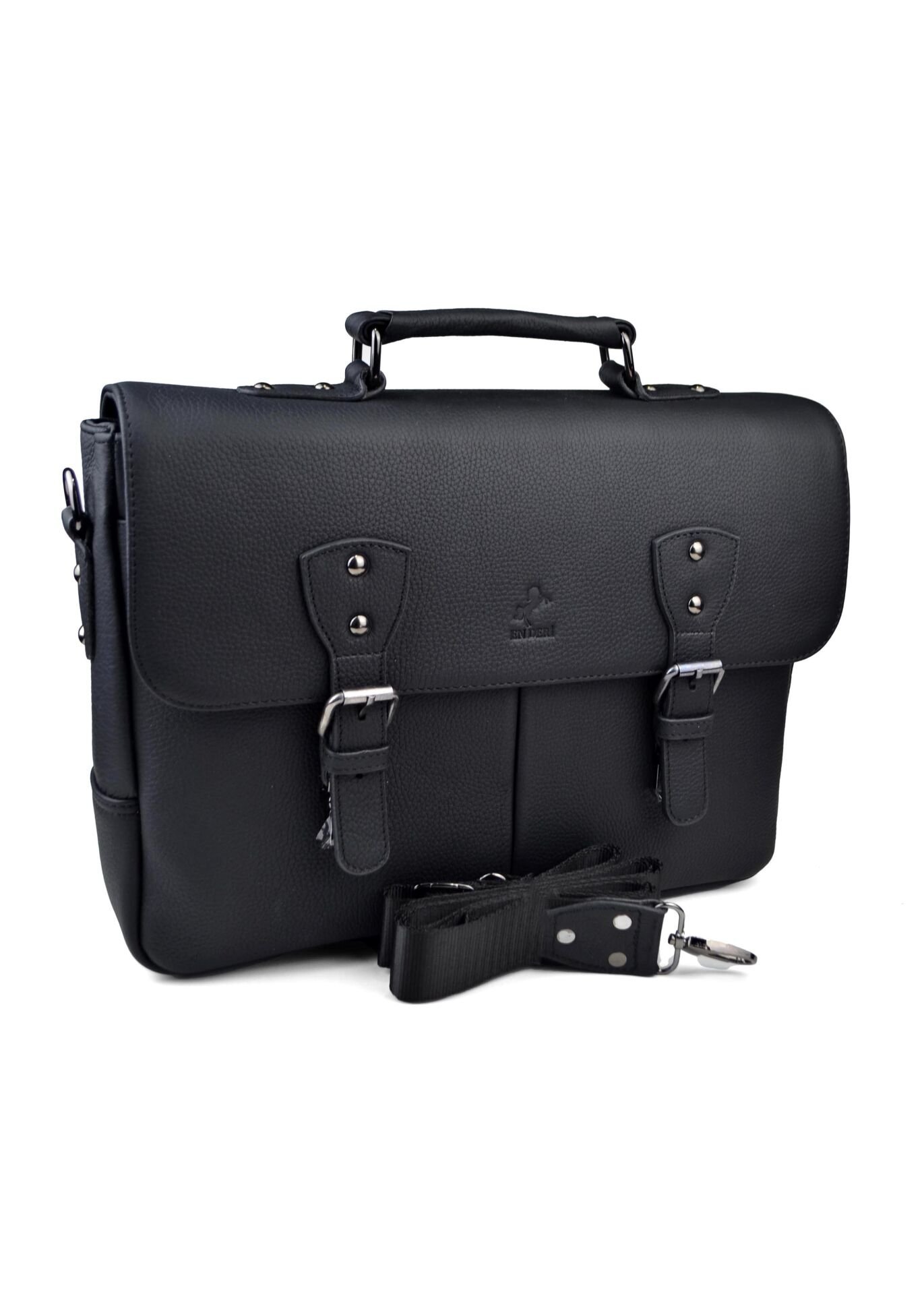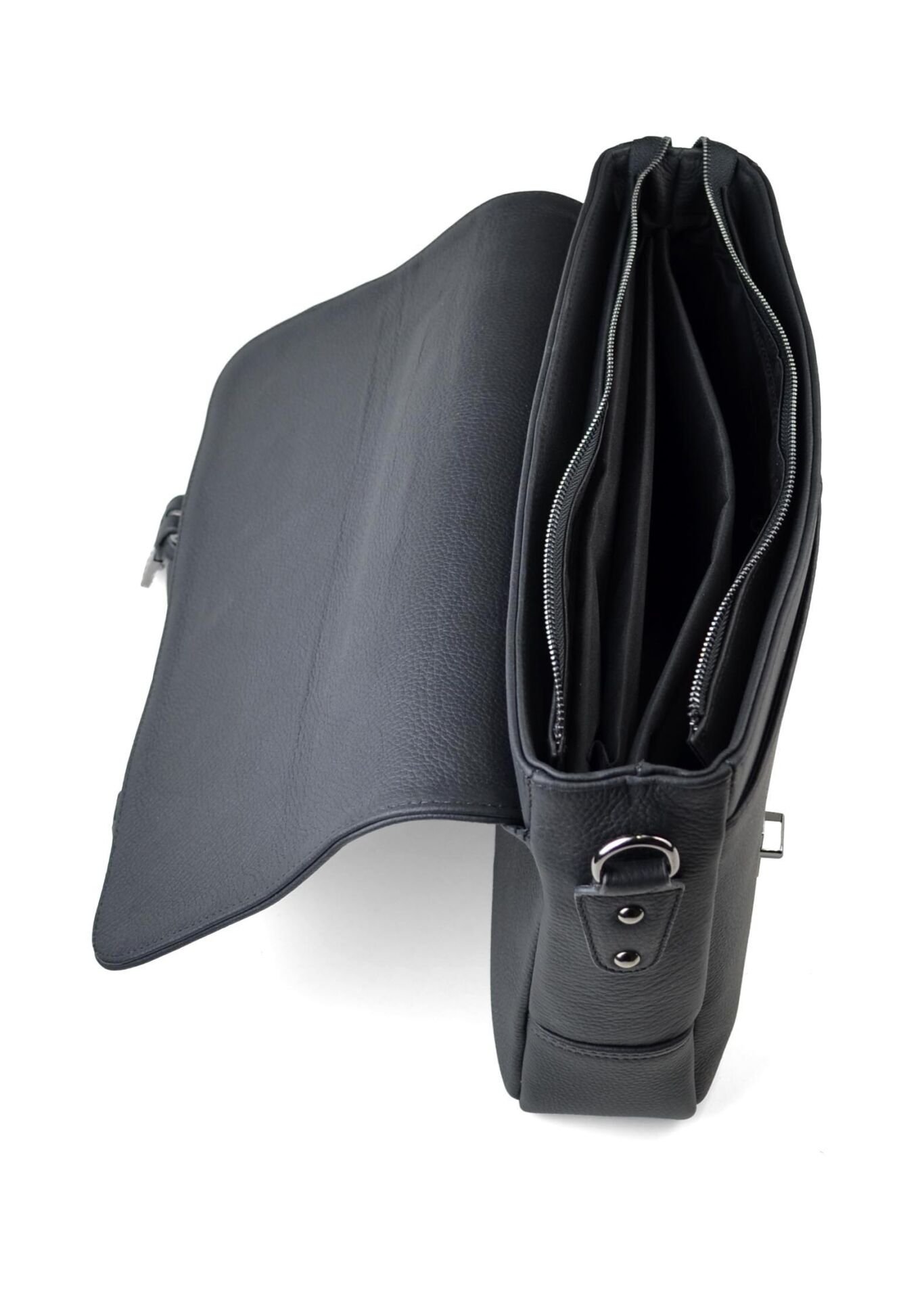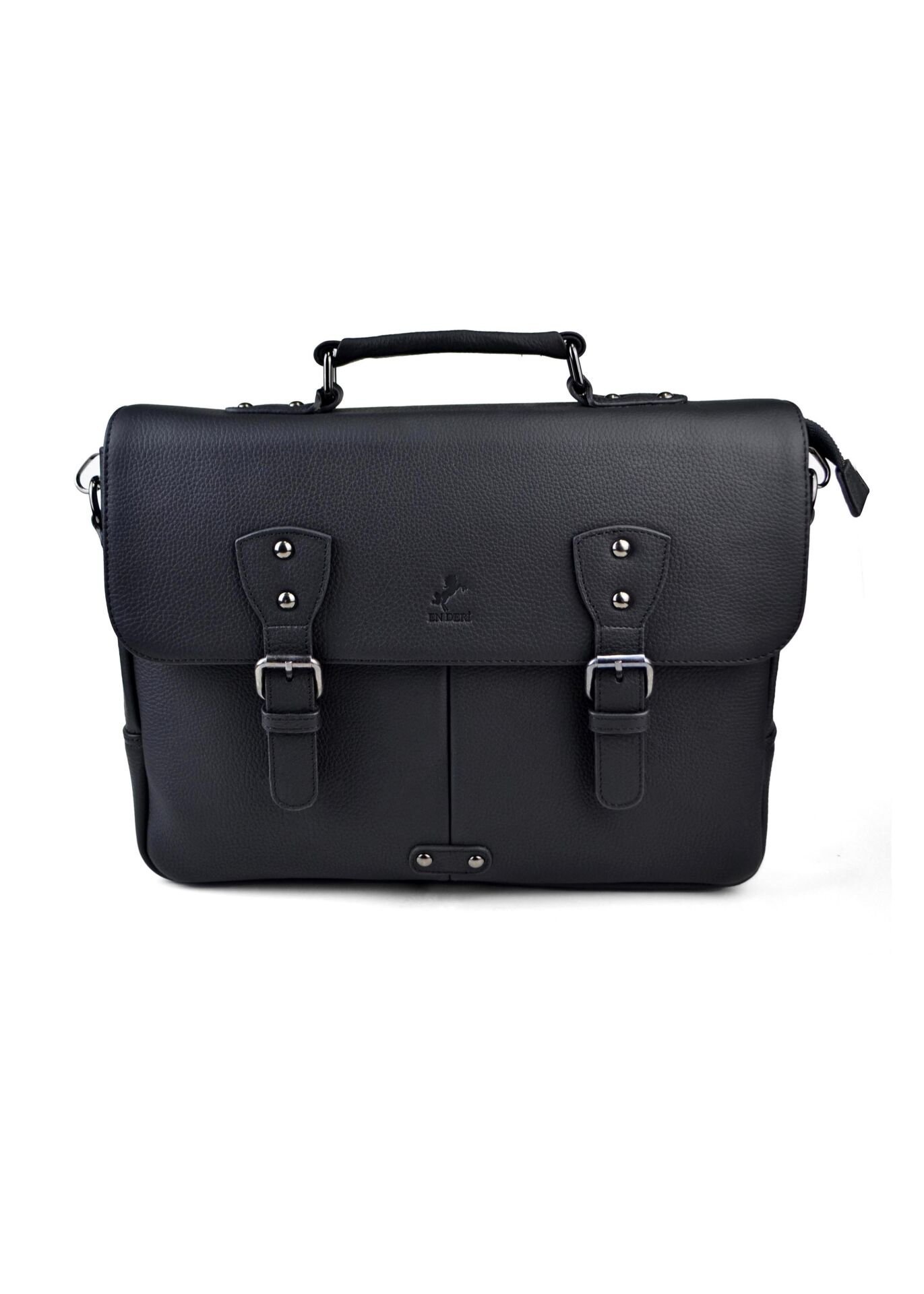 Siyah Hakiki Deri 14 Inc Çok Bölmeli Evrak Ve Laptop Çantası 4025