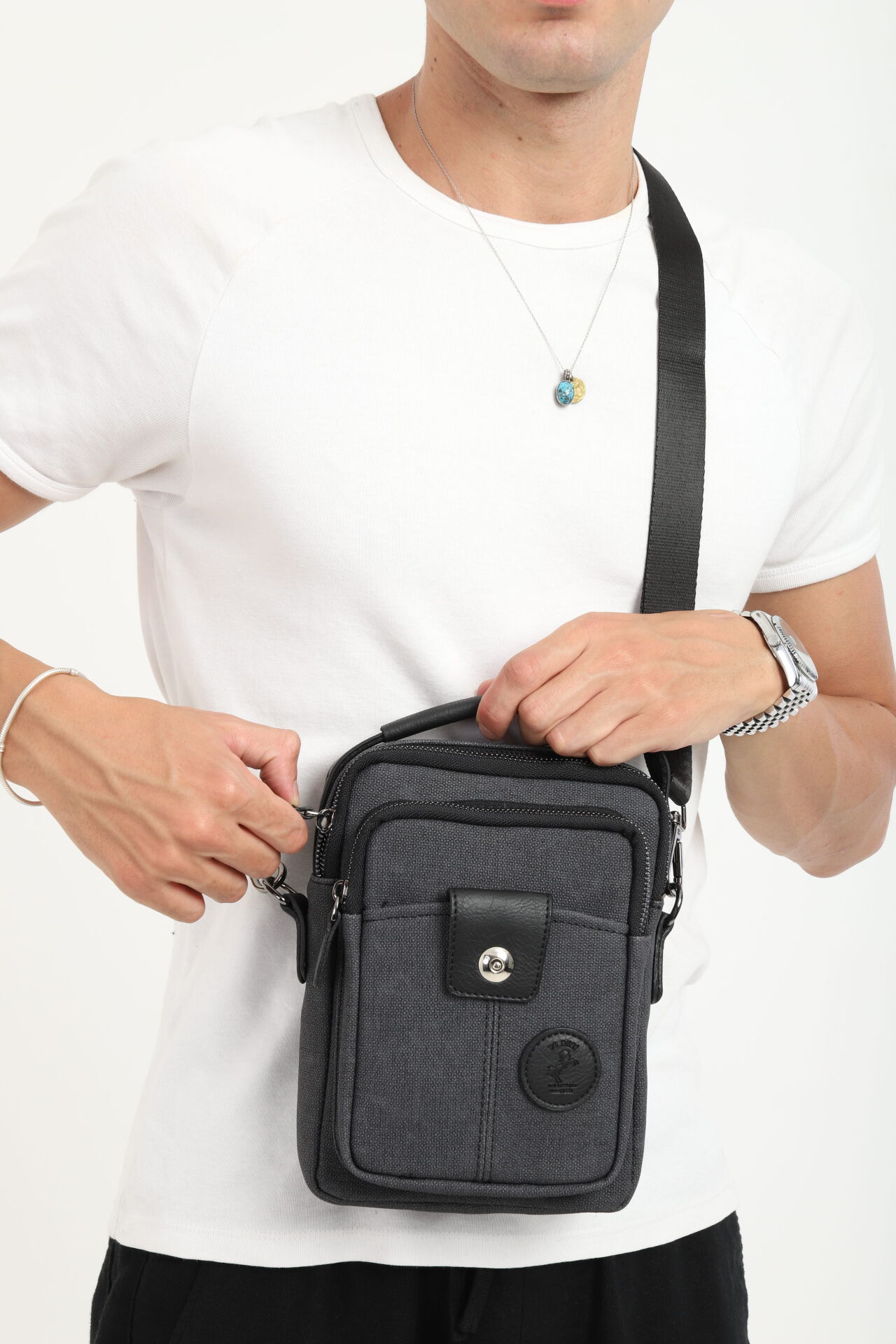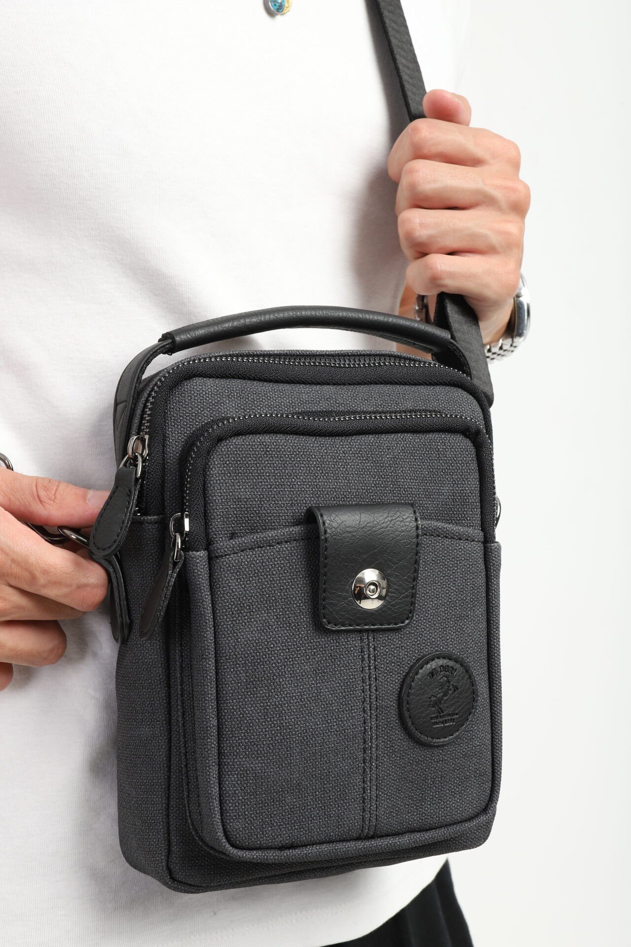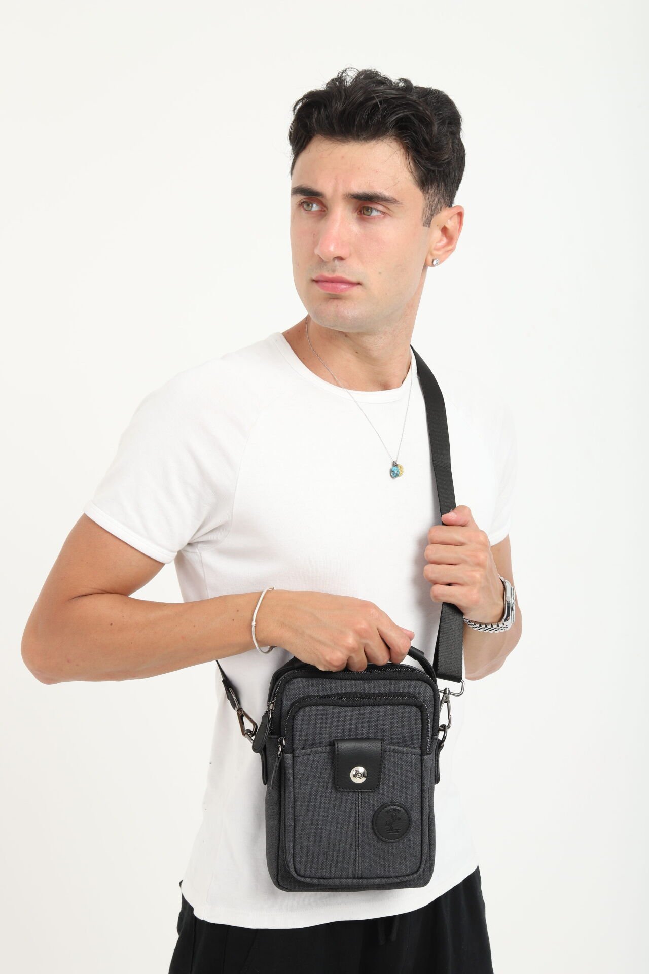 Siyah Kanvas Erkek El ve Omuz Çantası – Ayarlanabilir Çapraz Askılı, Çok Bölmeli Postacı Çanta