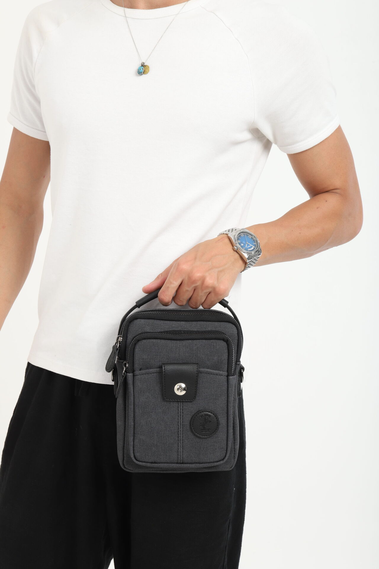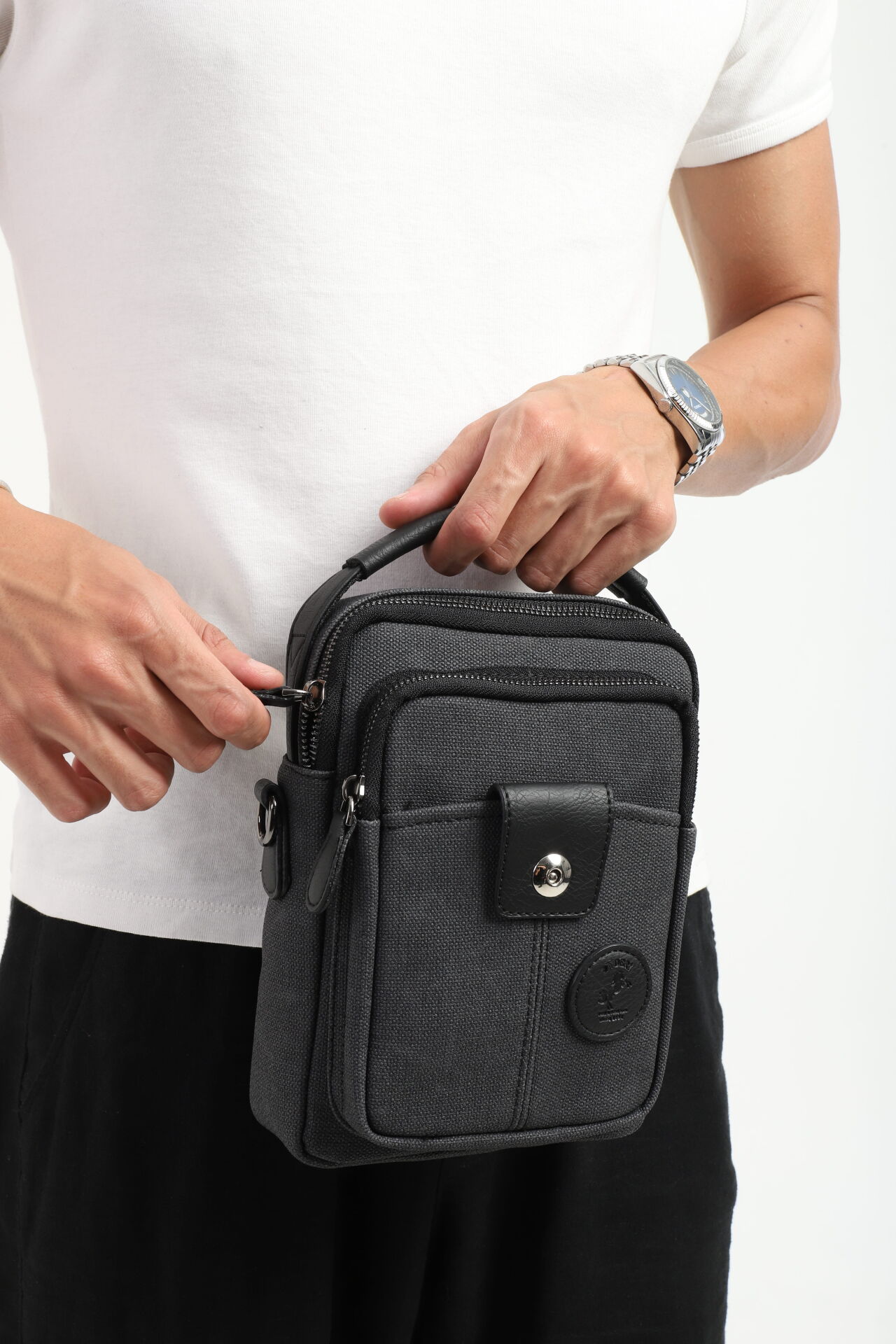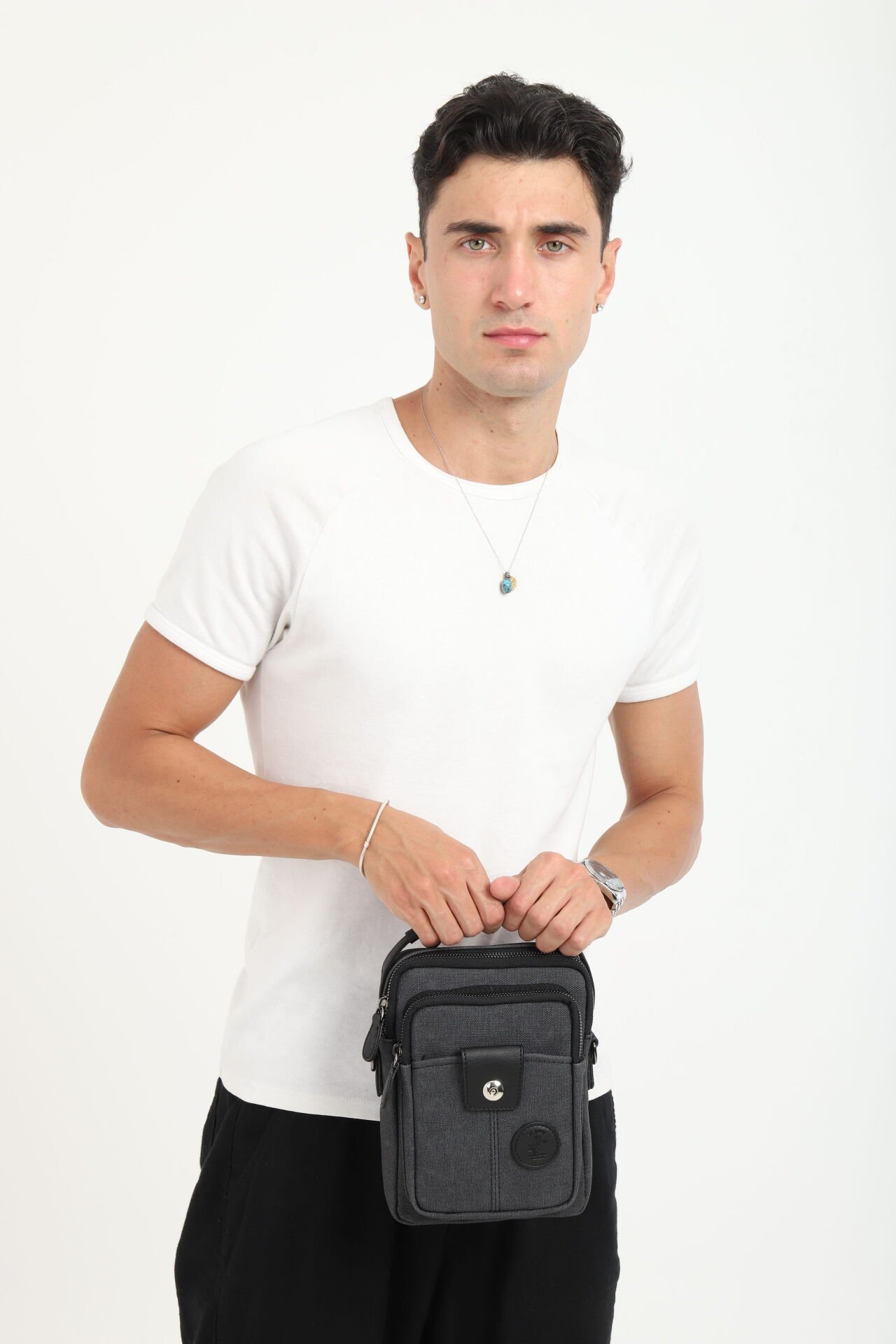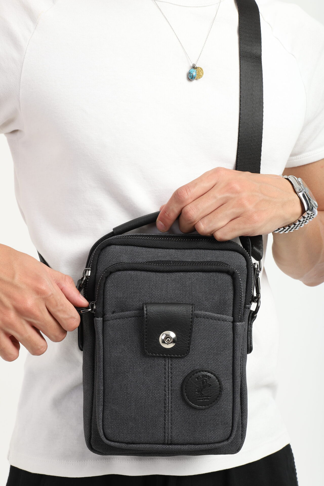 Siyah Kanvas Erkek El ve Omuz Çantası – Ayarlanabilir Çapraz Askılı, Çok Bölmeli Postacı Çanta