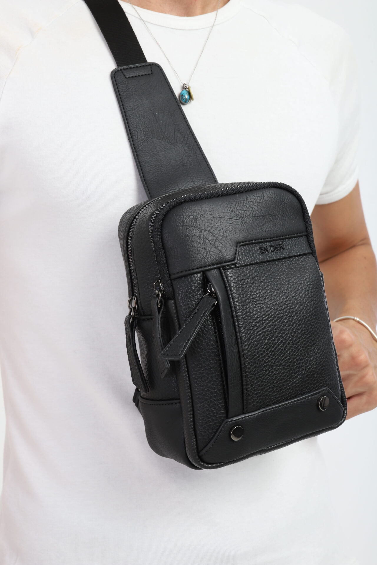 İşlevsellik ve estetiği buluşturan bu siyah omuz çantası, modern hayatın temposuna ayak uydurmak isteyenler için EN DERİ tarafından tasarlandı. Her çanta, üretim sürecine bağlı olarak kendine özgü bir dokuya sahiptir.