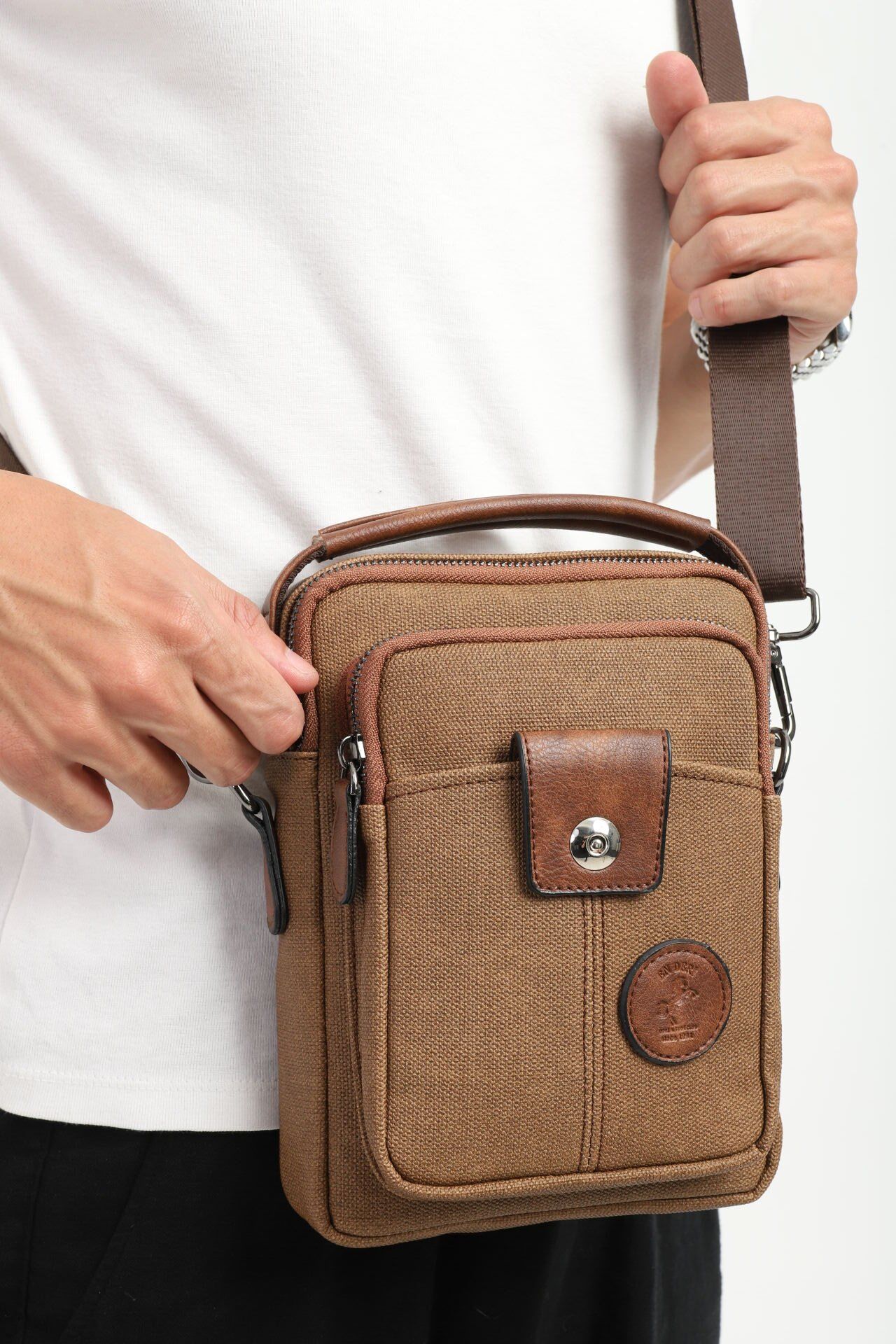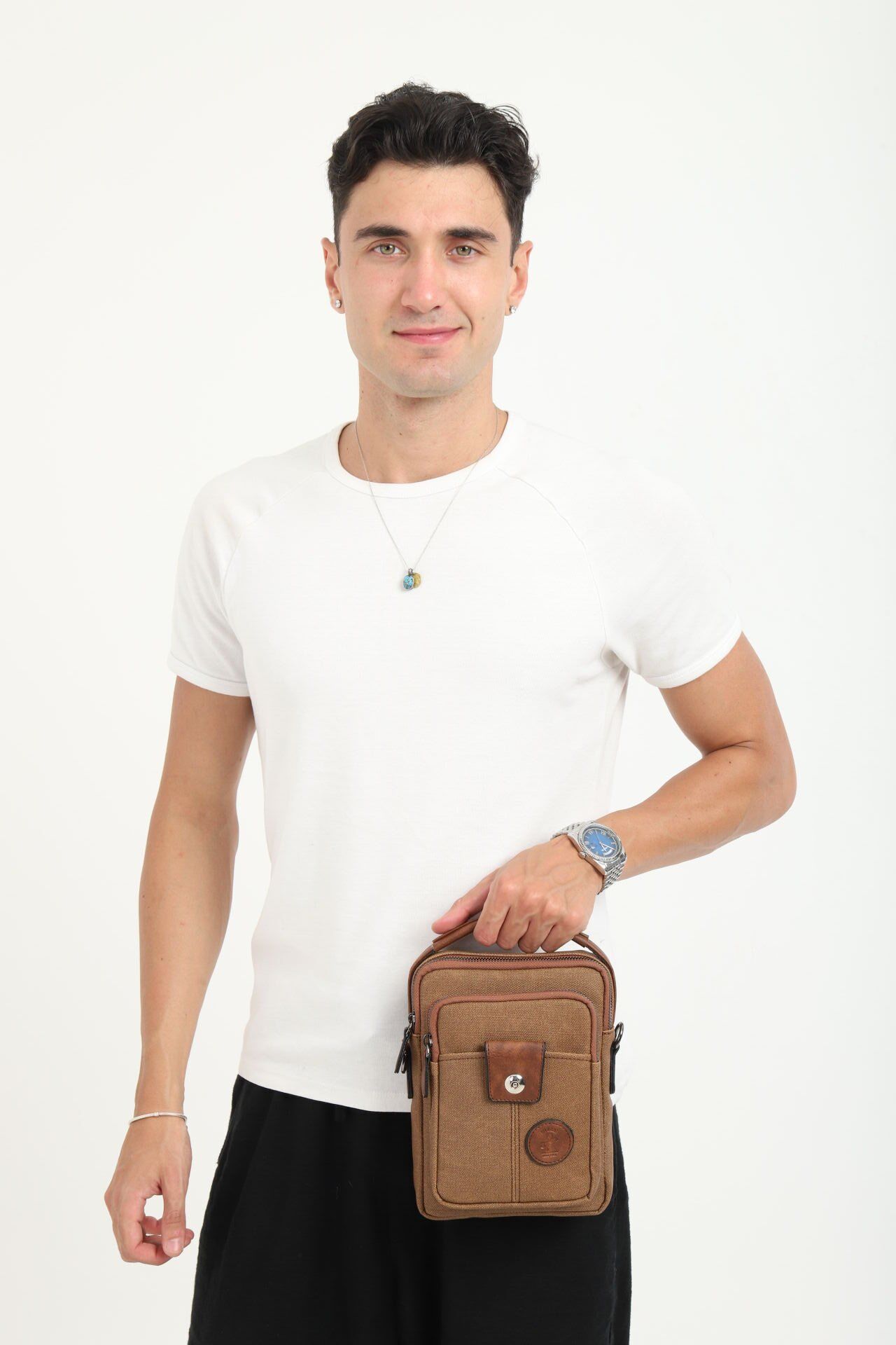 Taba Kanvas Erkek El ve Omuz Çantası – Ayarlanabilir Çapraz Askılı, Çok Bölmeli Postacı Çanta