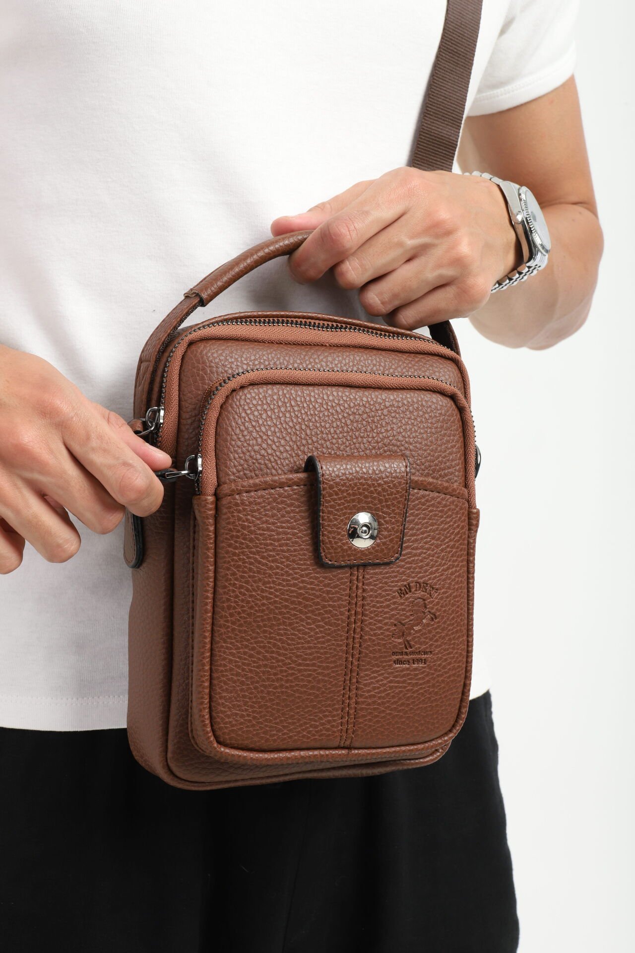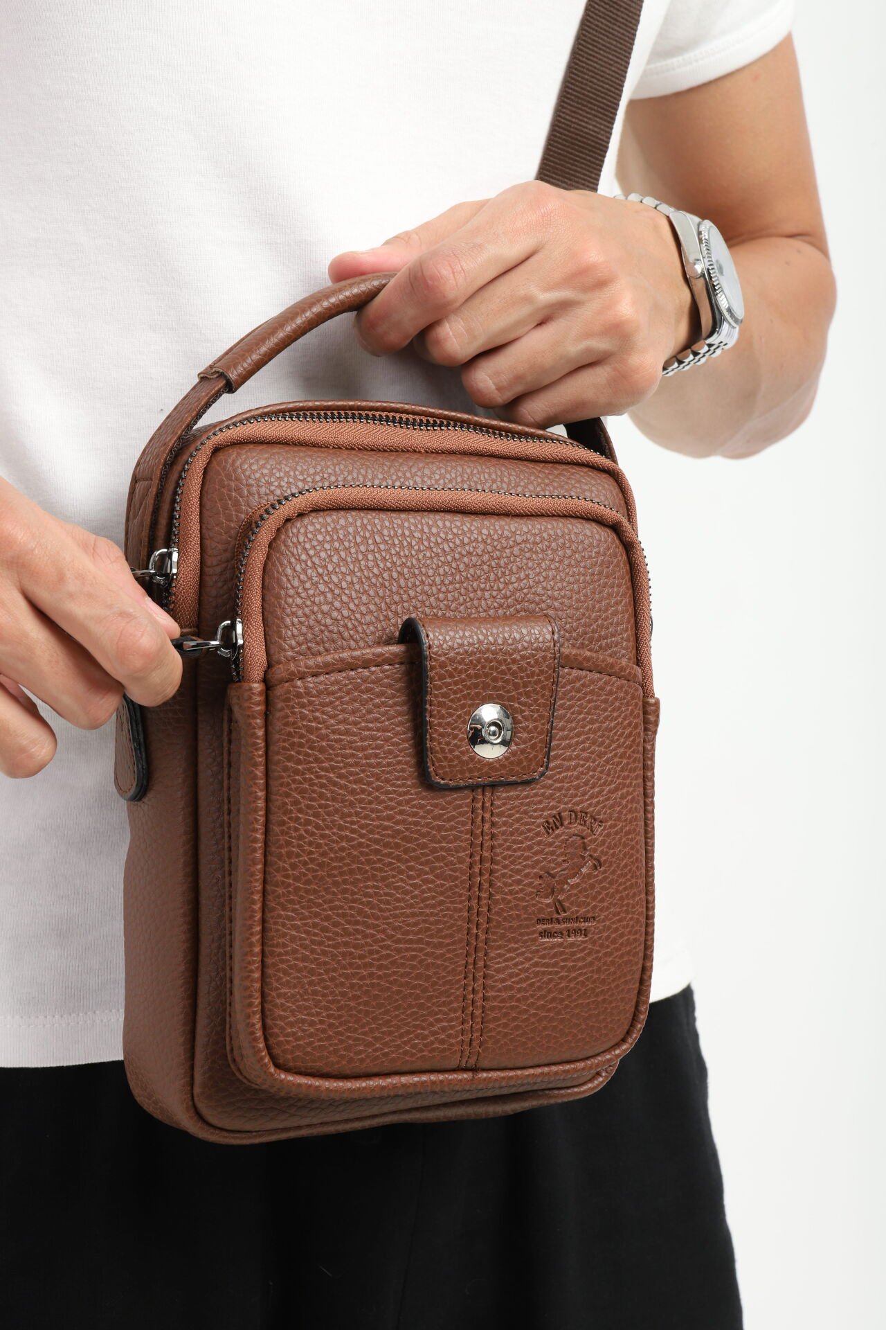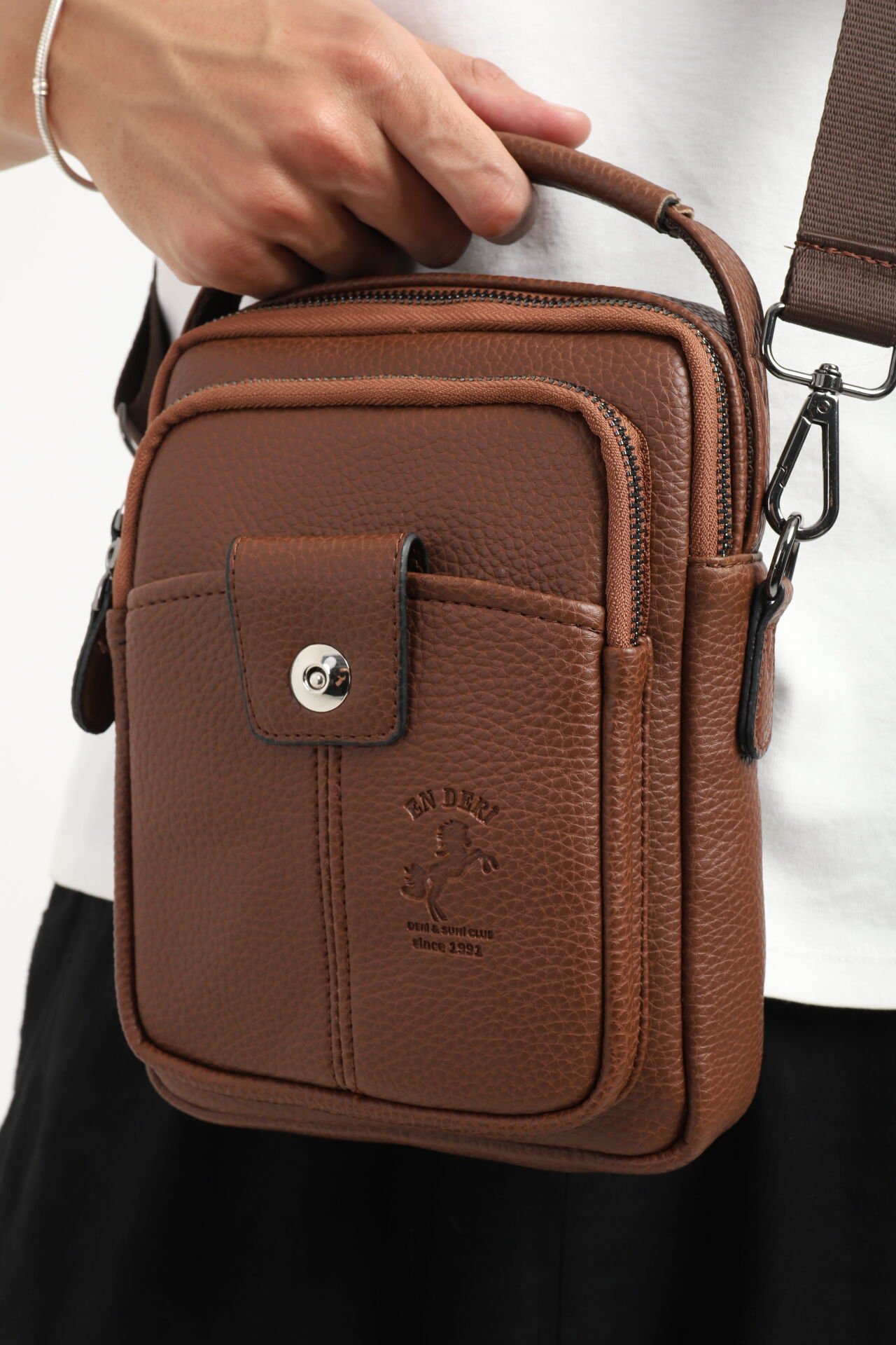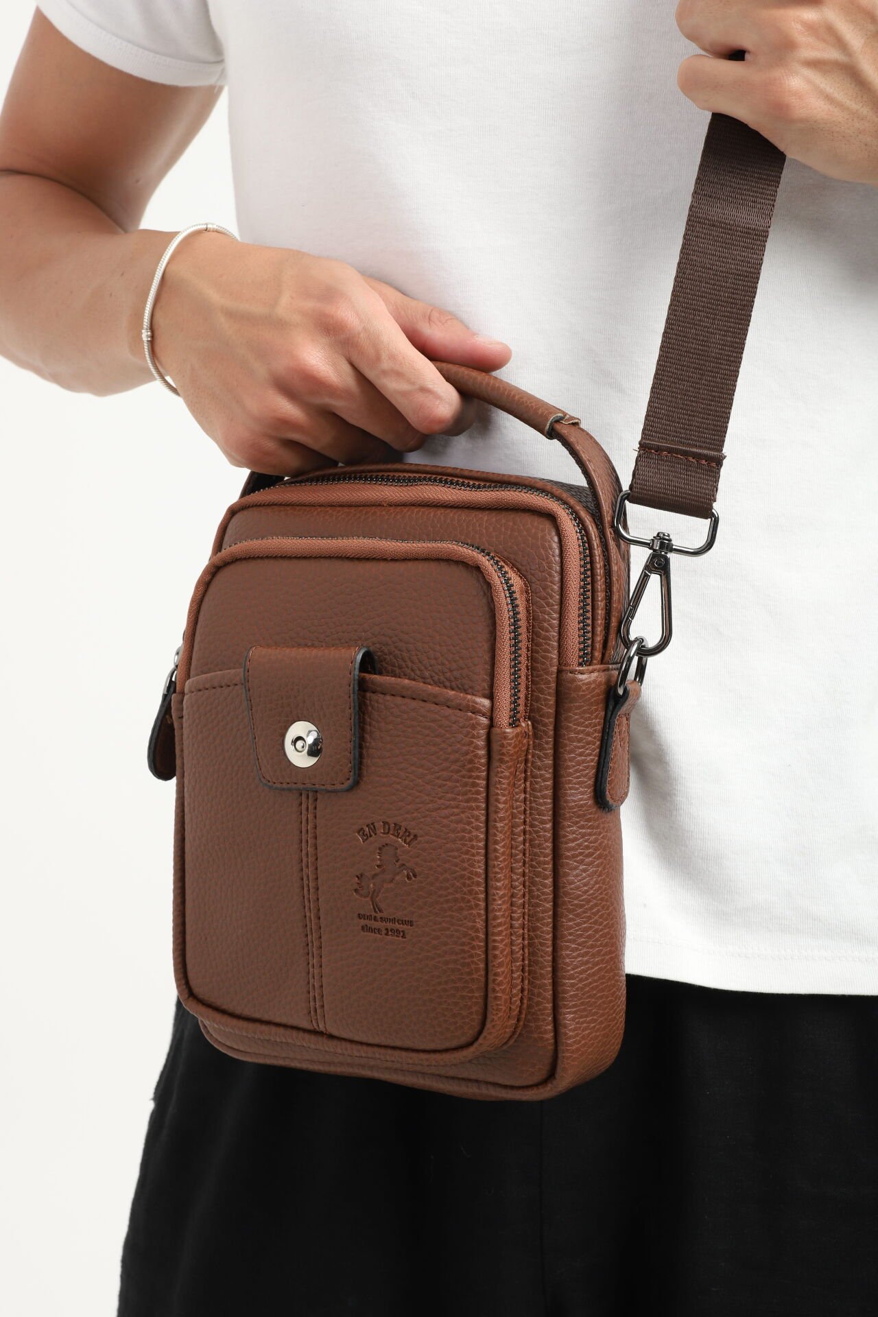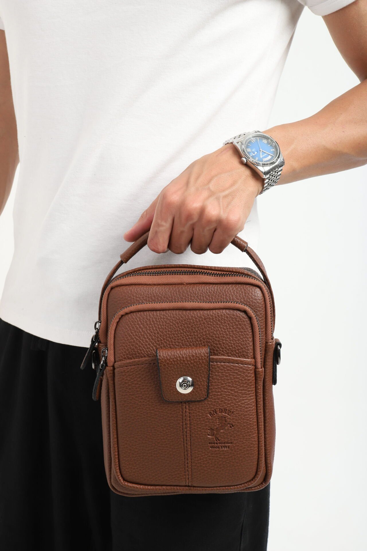 Erkek el çantası ve çapraz askılı omuz çantası arayanlar için şık, hafif ve kullanışlı bir alternatiftir