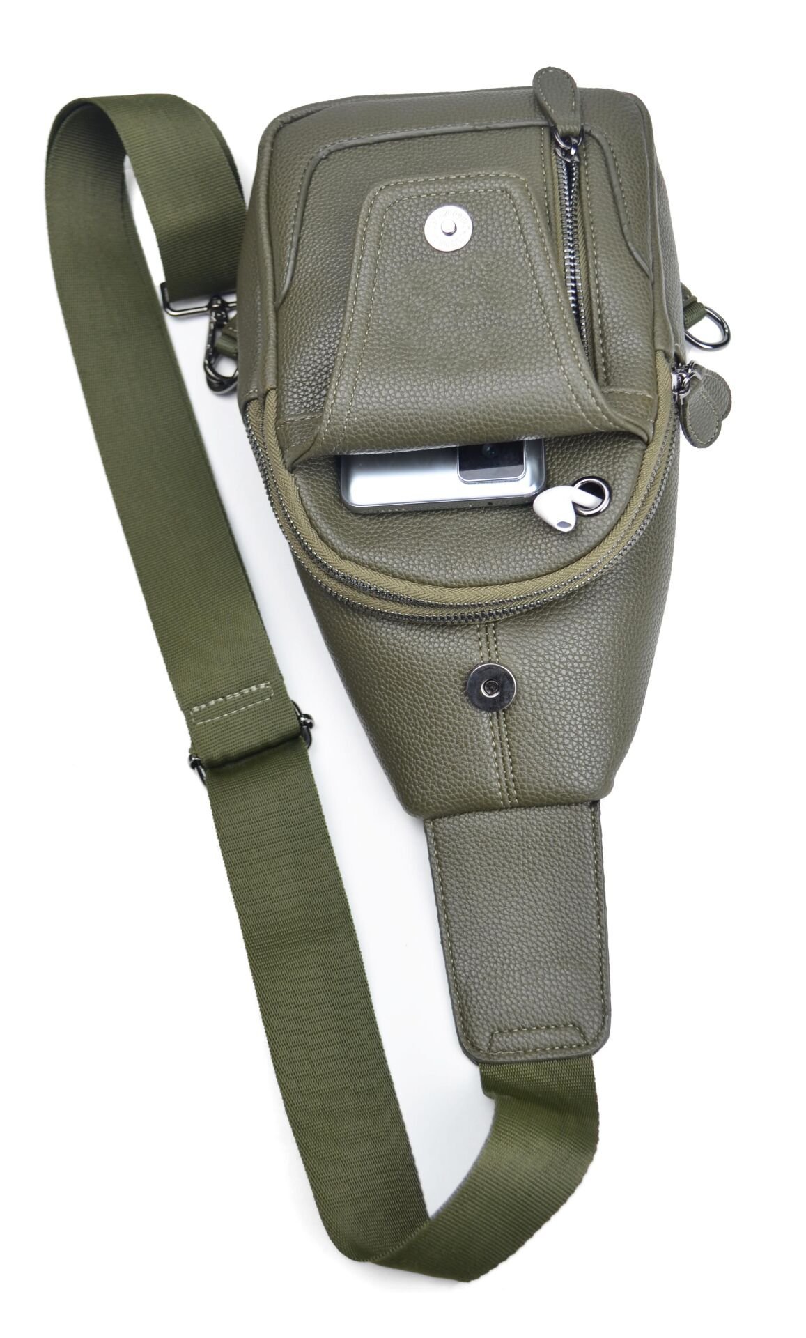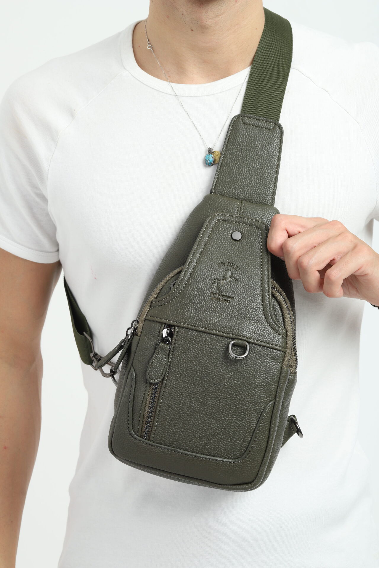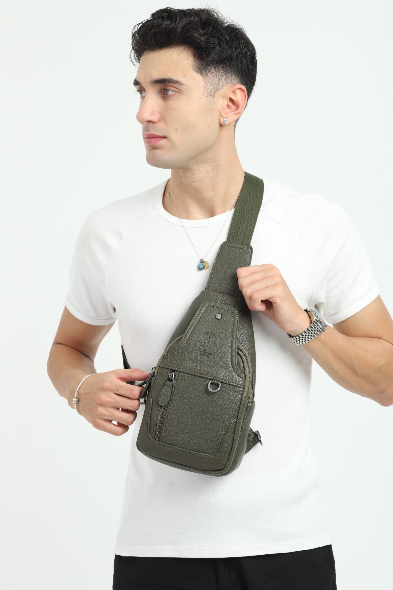 Haki Çapraz Çanta - Mıknatıslı Bölmeli Askılı Erkek Omuz Çantası
